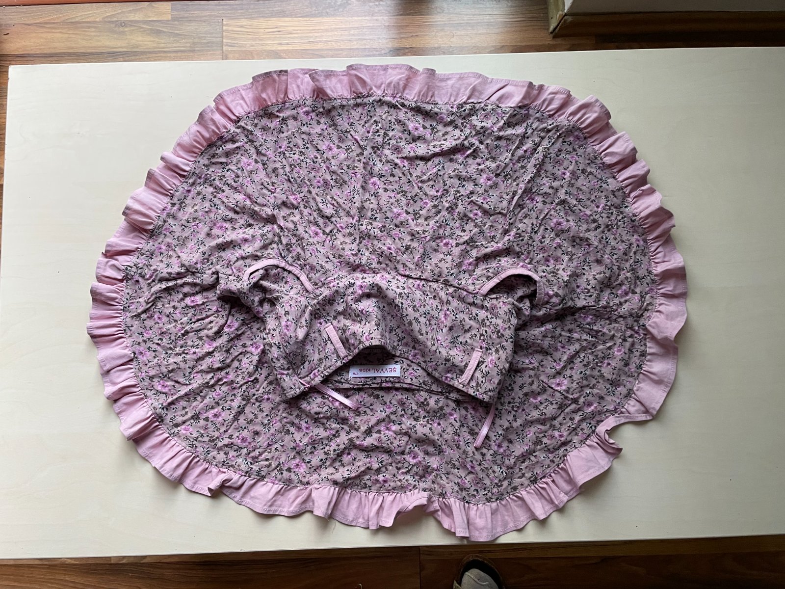 hol. nabízím k prodeji tuto sukni s jemným květinovým vintage vzorem, vel dětská 176, ale myslím i XS - měřte, Sevval kids. Pevný pas, pak široká kolová sukně. Jemná látka jako u viscosových košil / složení . Barva taková šedo/béžovo/růžová a růžové volány a kvítky. Nošená, bez vad, krásná