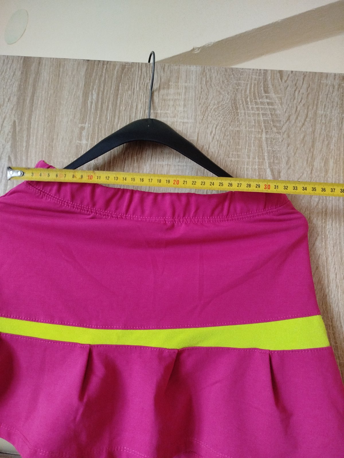 Na zadní kapse šmouha... nezkoušela jsem čistit..viz detailní foto. Jinak sukně bez vad, regulace v pase. Rozměry délka 31, pas 29 max 35