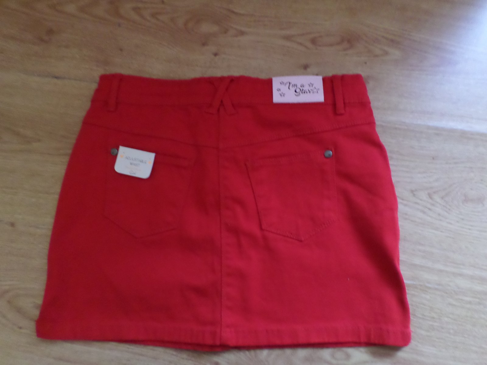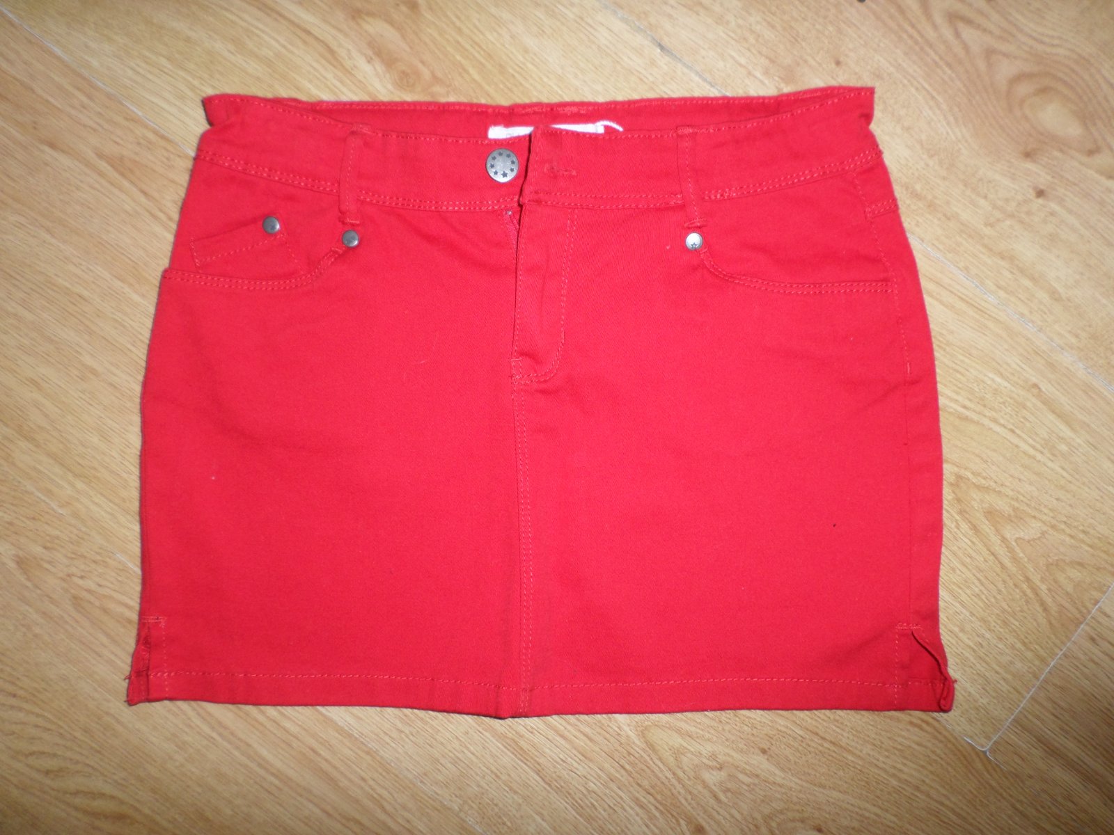 Červená minisukně zn. Zara, vel. 13-14 let, ale lze nosit i dříve. V pase regulace. Na bocích rozparky. U jednoho rozparku je pidi flíček. Délka 31.5 cm, pas 2x34 cm