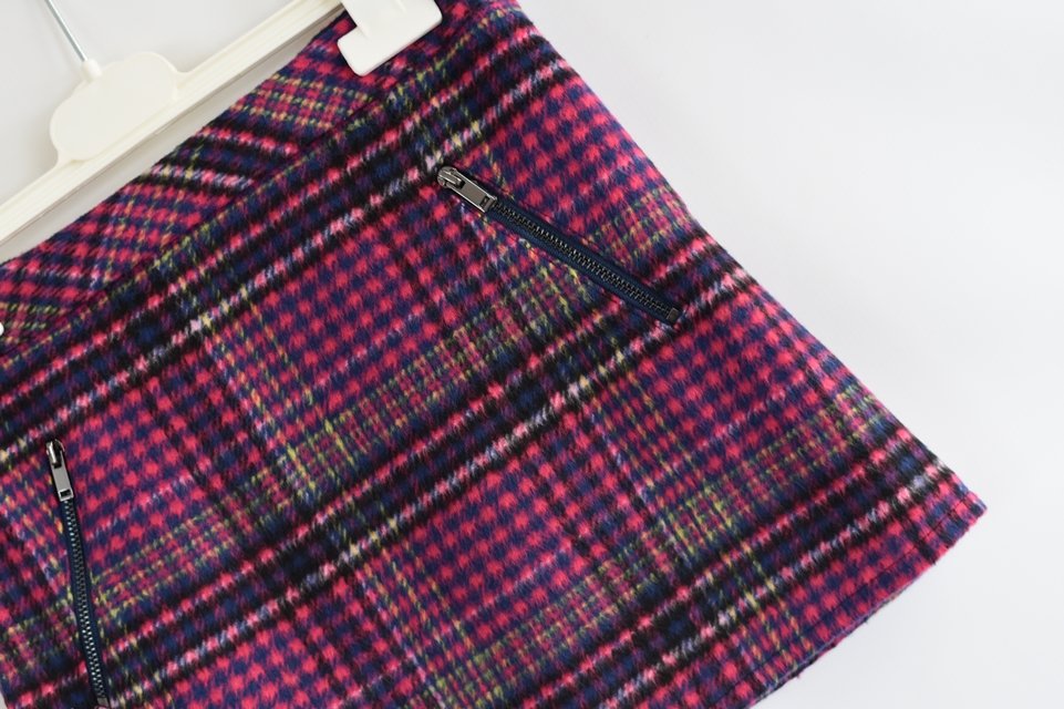 Fialová, teplá sukně. Regulace v pase, zip na boku.