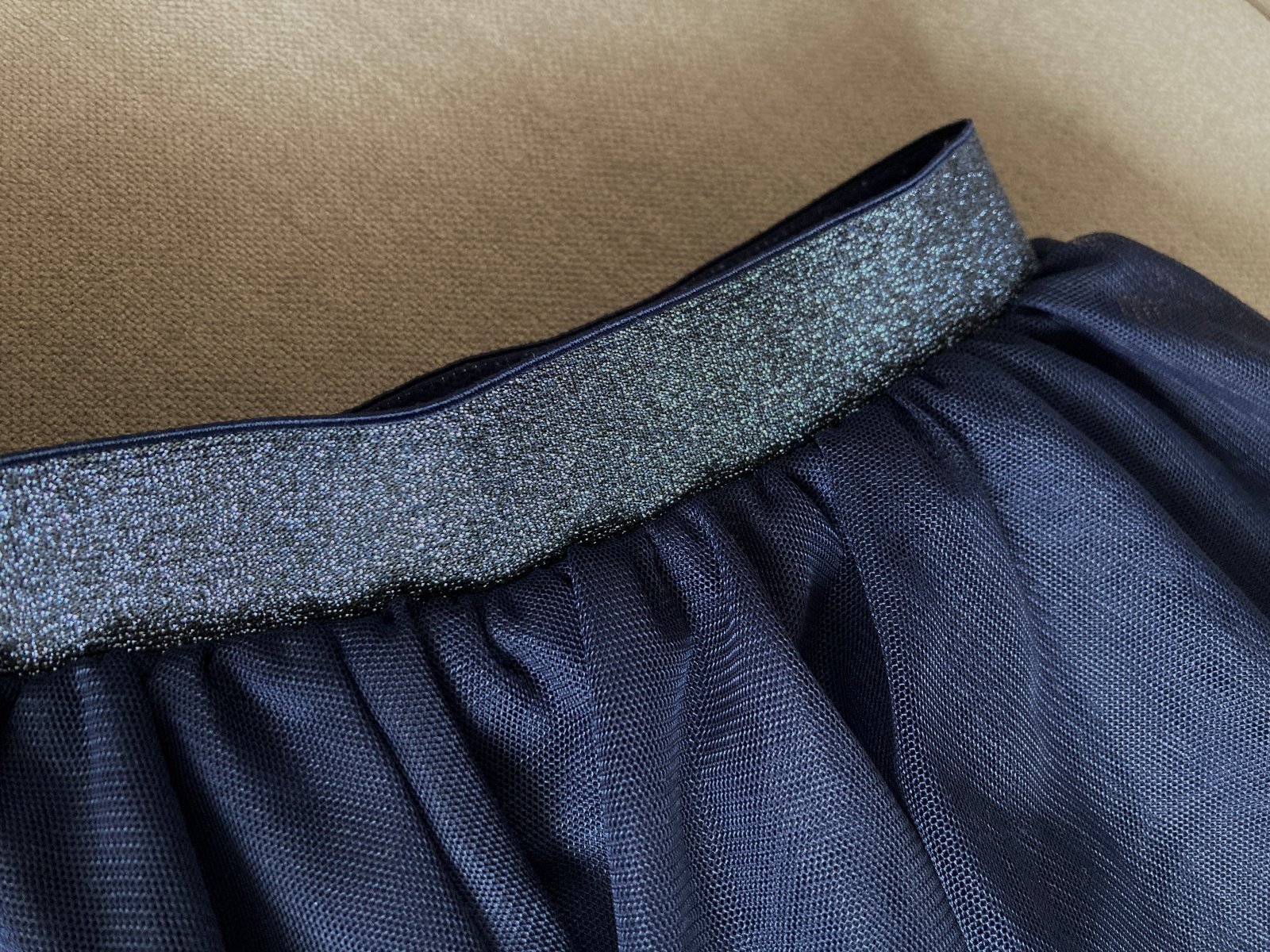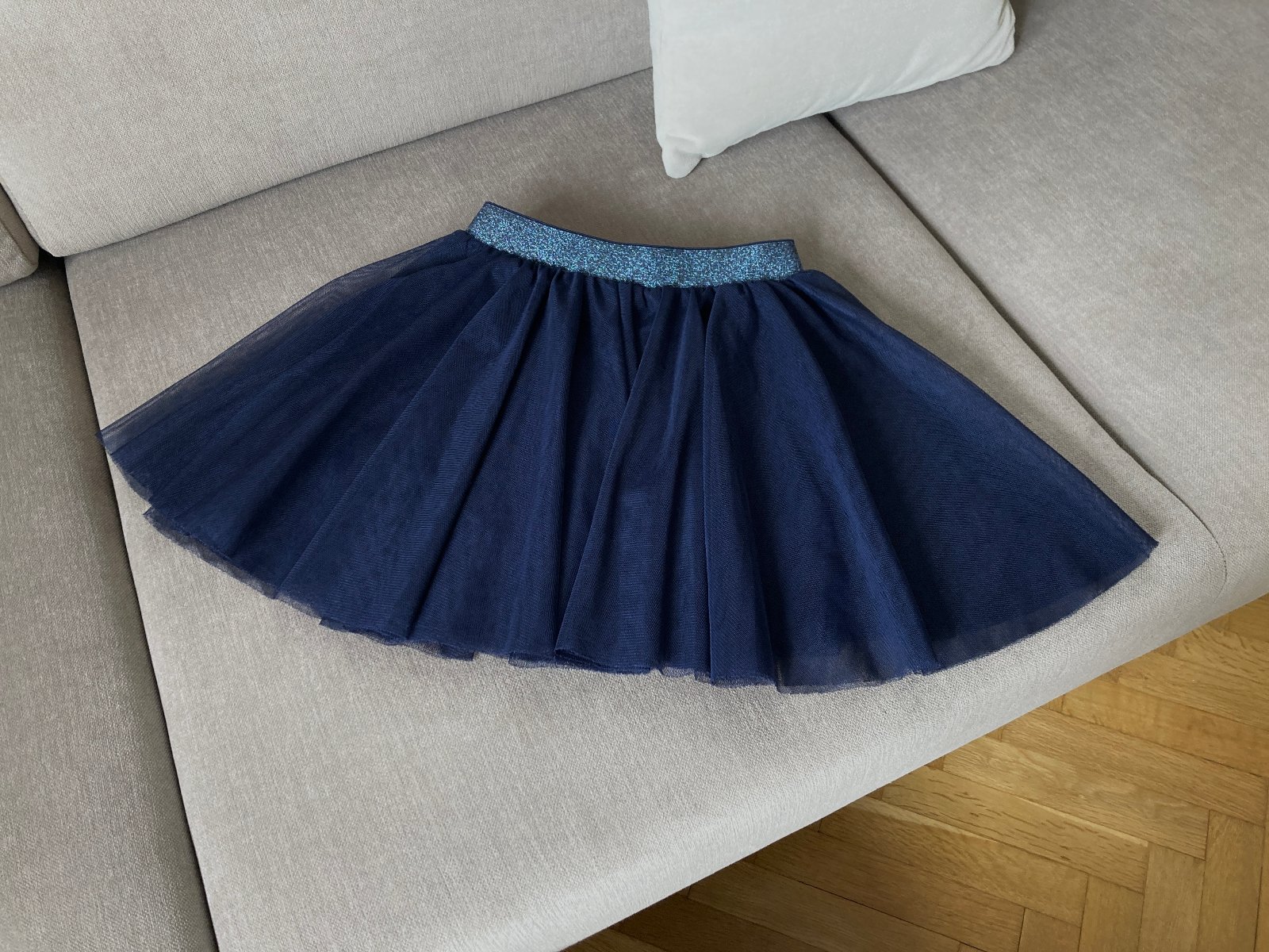 Dětská tylová kolová sukně se stříbrným elastickým pasem a tenkou podšívkou. Tmavě modrá. Zn. Tchibo Kids, vel. 122/128. Elastický pas šířka 25cm, délka sukně 31cm. V pěkném stavu. PC 350Kč. Lze zaslat poštou (poštovné dle dopravce - Zásilkovna, Balíkovna, ČP) nebo osobní předání Praha 6-Bořislavka.