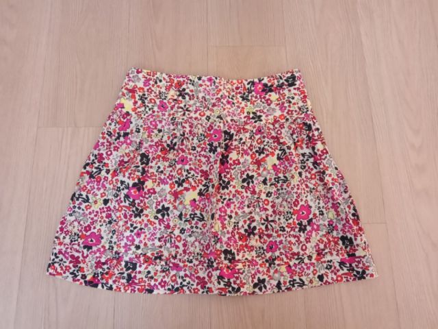 Prodám plátěnou sukni s květy, na boku zip, ozdobné prošívání, bez kazů, fleků a žmolků. Velikost psaná S, nošeno u velikosti 146/152.