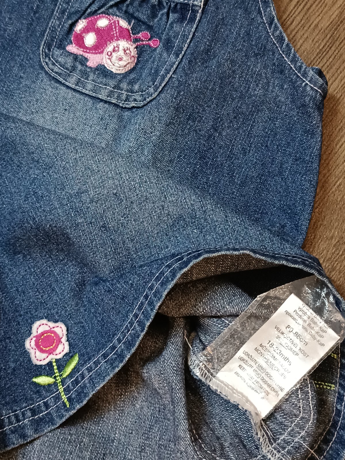 1) první s beruškou, zn. Baby Croc, velikostně odpovídá 18/23 měsíců (vel.80/86), kapsičky po stranách, materiál: 100% bavlna