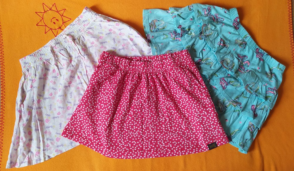 - sukně bílá s mořskými prvky - uvedená velikost 116/122, zn. Kik, Kč 30,-