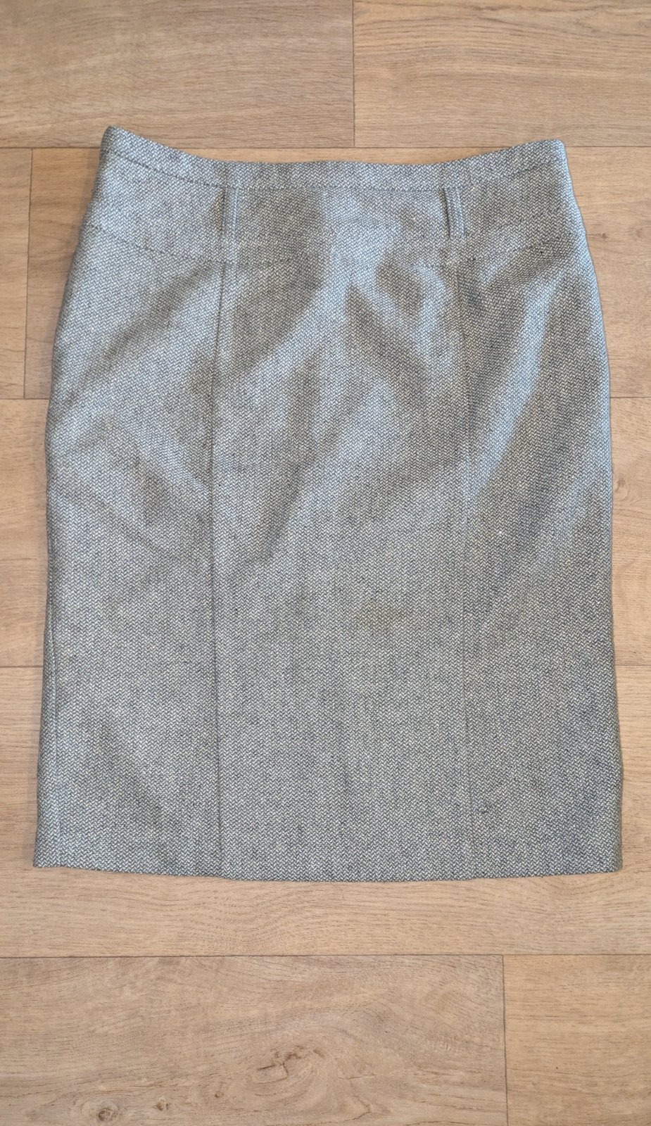 sukně má podšívku, je z odstínu šedé se zlatou nití