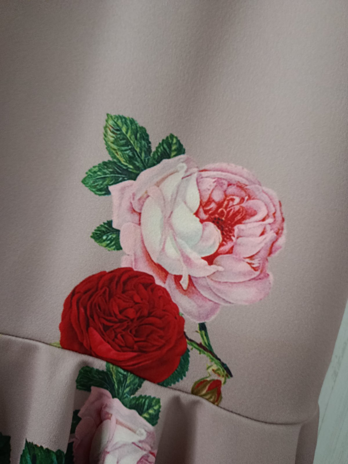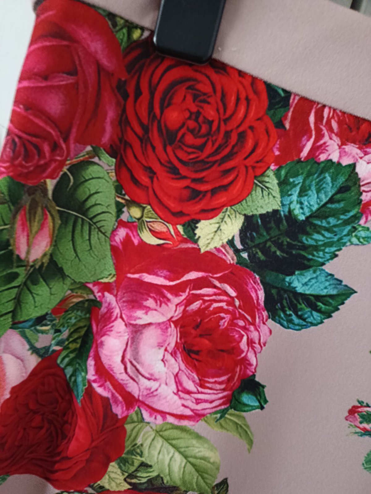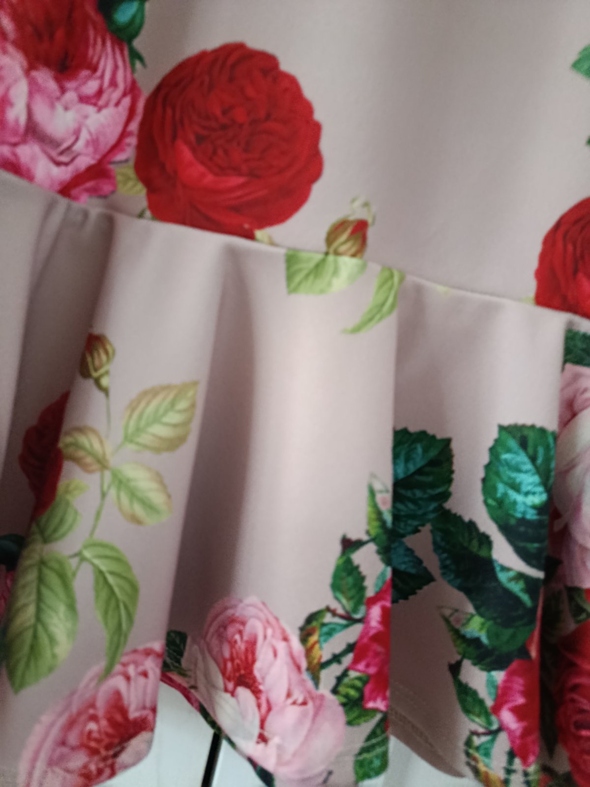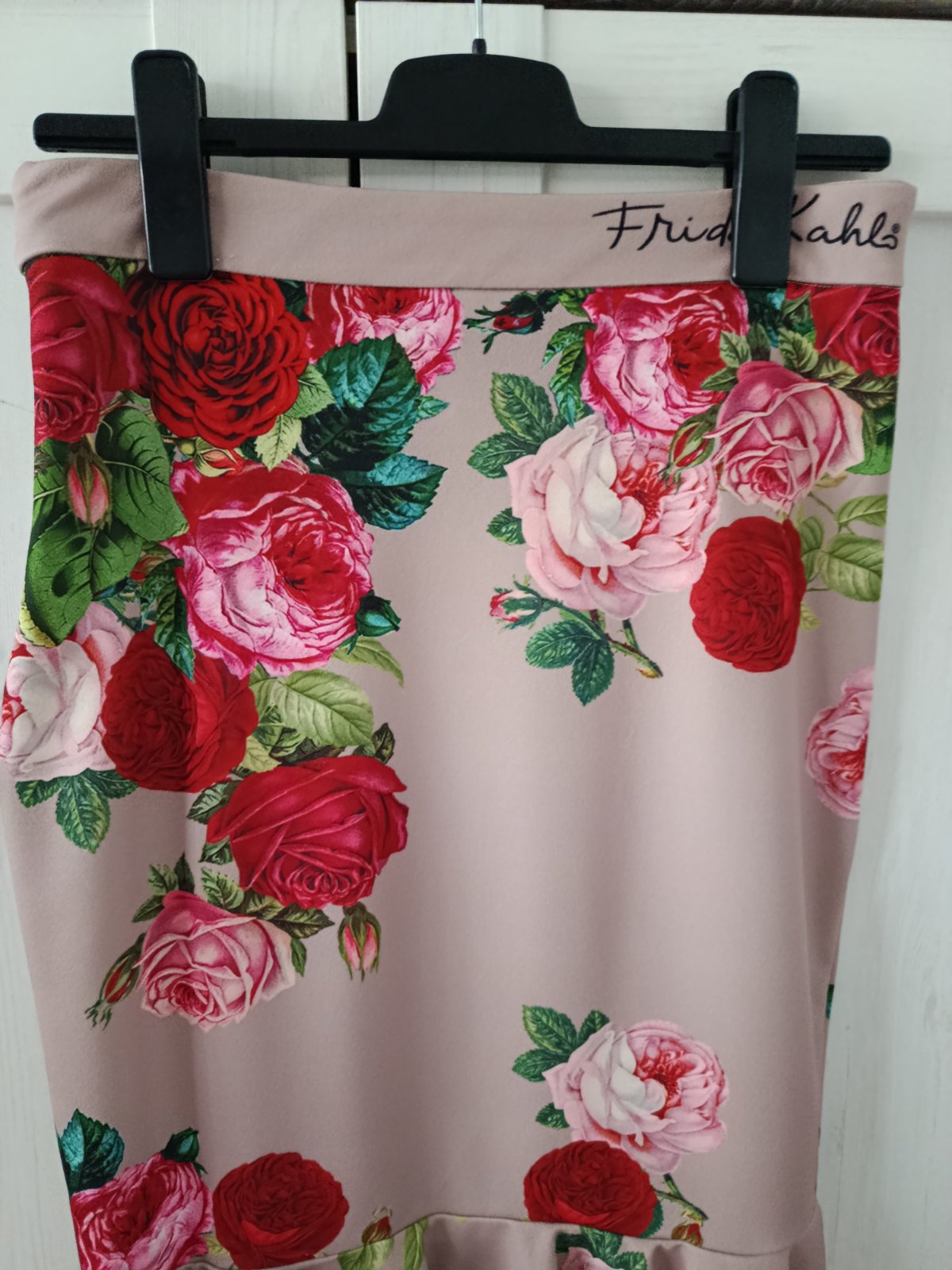 Krásná elastická sukně s potiskem růží a nápisem na pásku Frida Kahlo. Béžový podklad. Na boku zip. Je elastická. Sukně je nová, býval bych potřebovala menší velikost, ale nestihla jsem včas vrátit....Míry : délka 69 cm, pas 2 x 39 cm...Materiál : polyester + elastan. Poštovné - balíkovna za 85 Kč nebo zásilkovnou za 90 Kč.