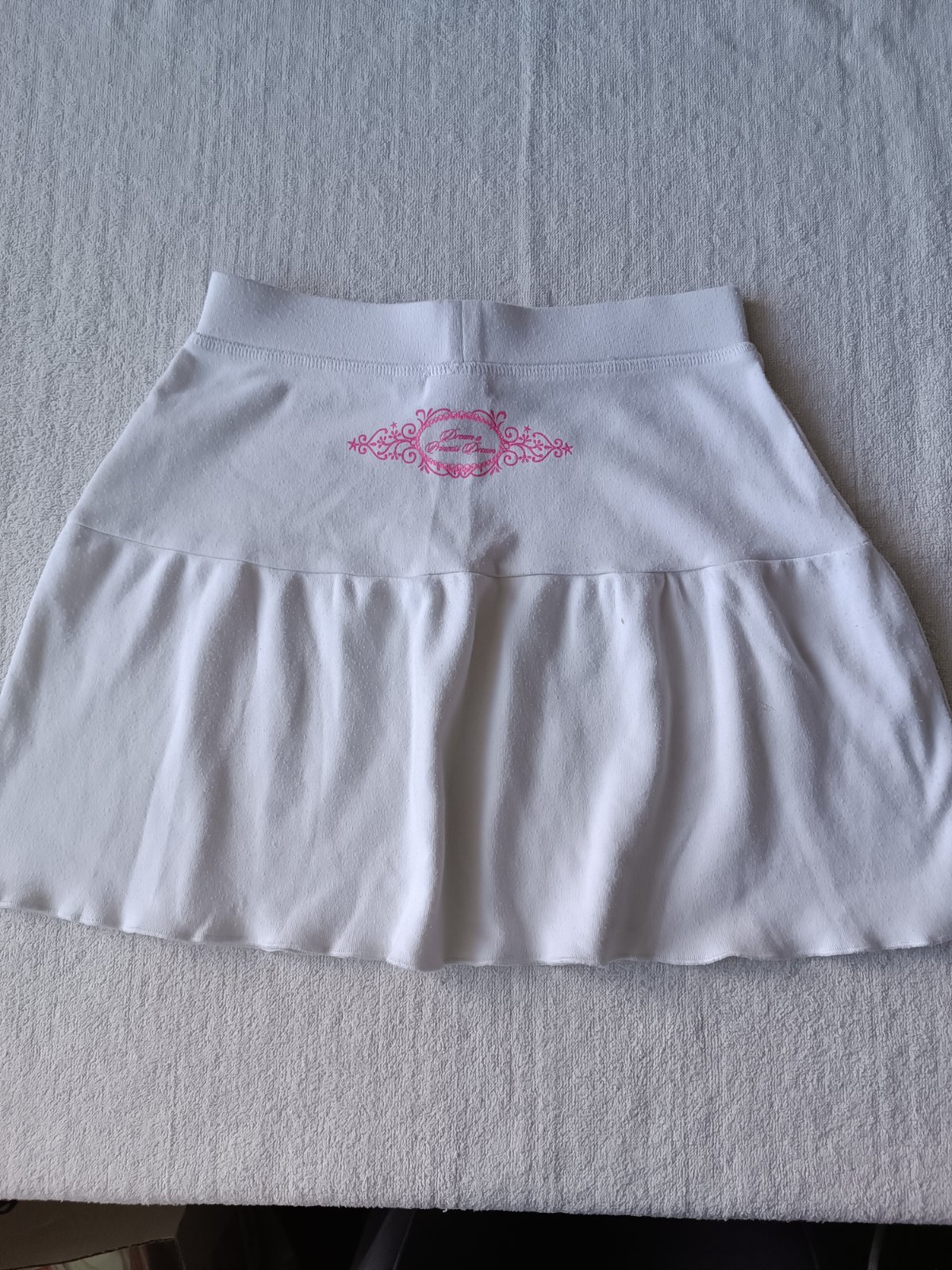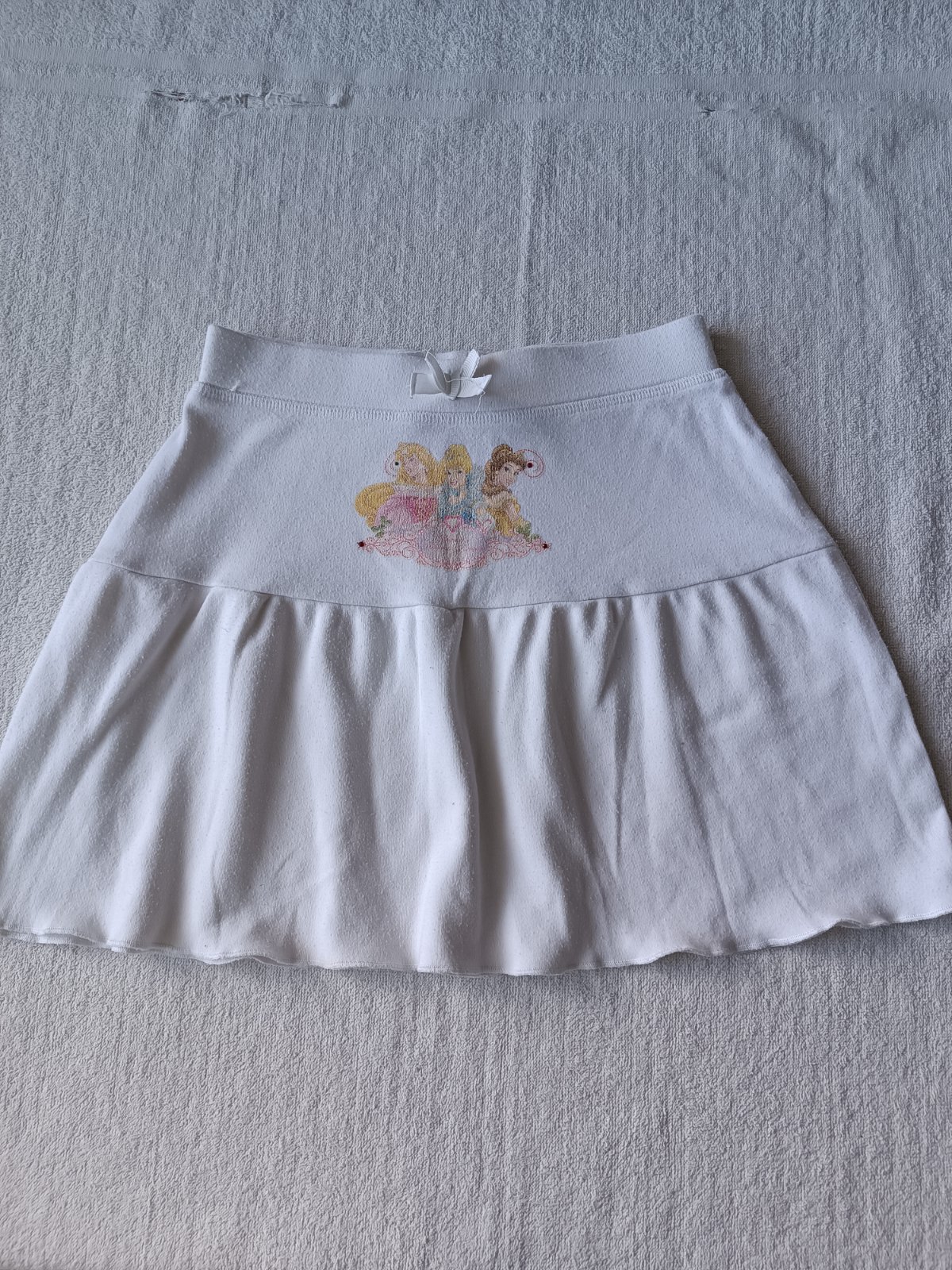 Krásná sukýnka kterou jsem šila pro dcerku už je nám bohužel malá.Pas je na gumu rozměr v klidu je 2 krát 29 cm,celková délka je 27,5 cm.Sukně je lehká na léto.Má na sobě zažloutlý flek (snad půjde...