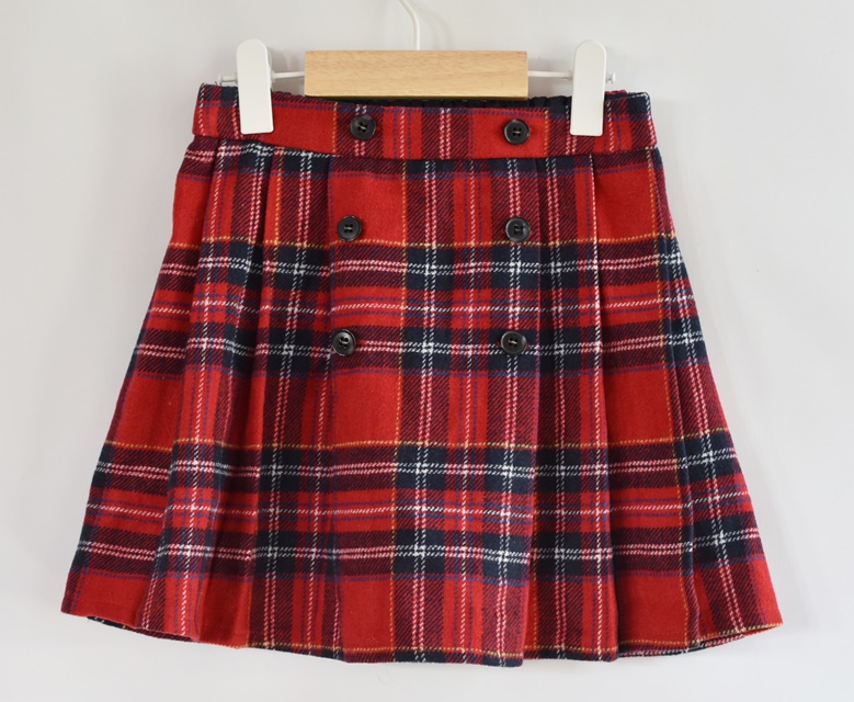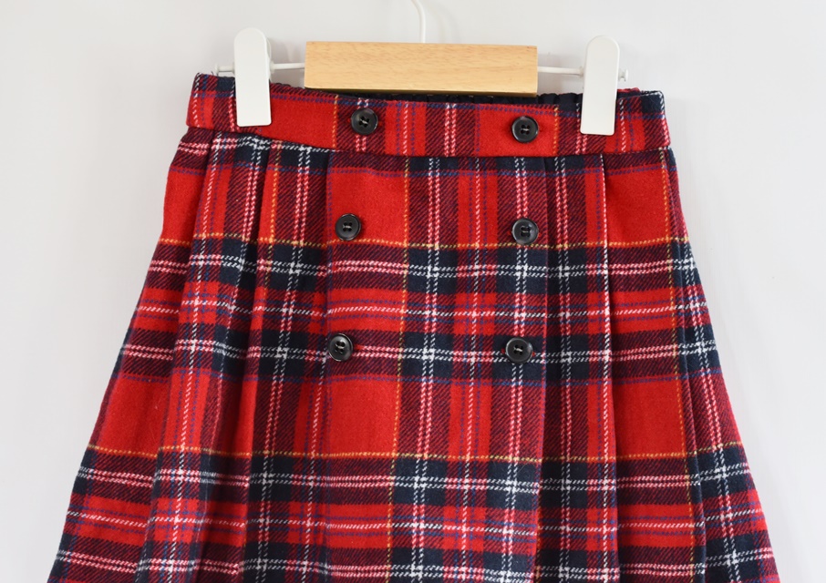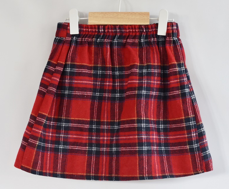 Červeno modrá sukně. V pase guma. Nemá podšívku