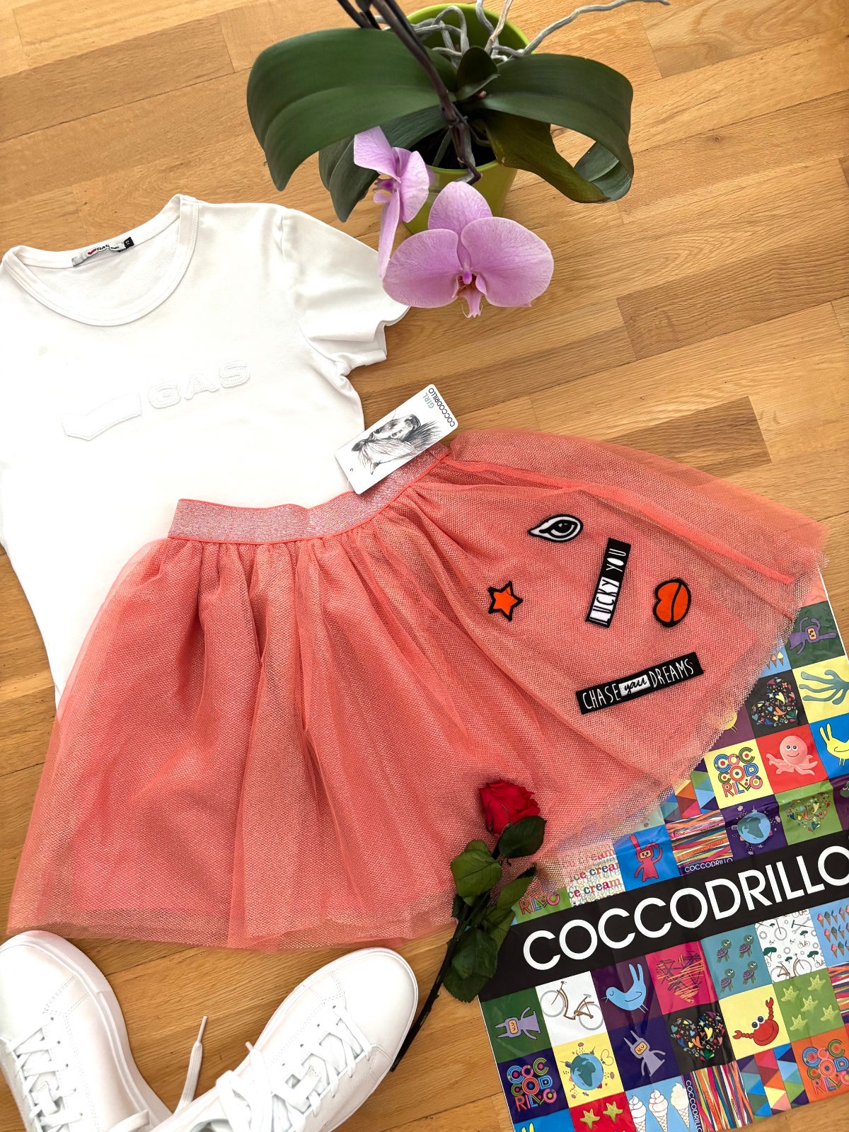 COCCODRILLO NOVÁ sukně 140, s visačkou, vhodné i jako dar! Luxusní modní design, sukně má 3 vrstvy viz.detail foto, barva tmavší meruňková. Prošité zlato stříbrnou třpytivou nitkou. Délka 39cm, pas nenataženo 2x28 cm. PC 489kč, nabízím se slevou! Poštovné zásilkovna 89kč, balíkovna 75kč.