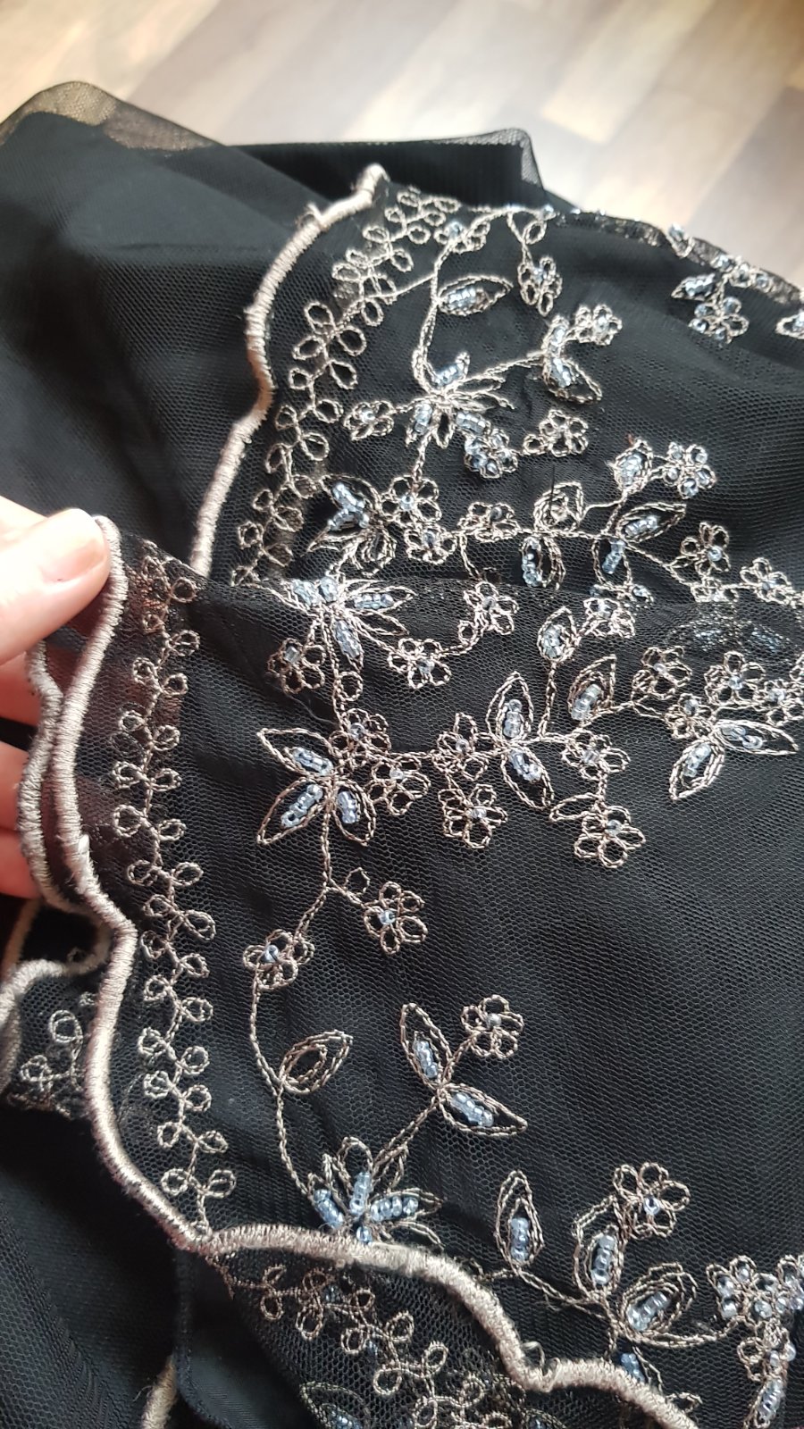 Lehounká sukně s krásnou výšivkou s všitými korálky.
