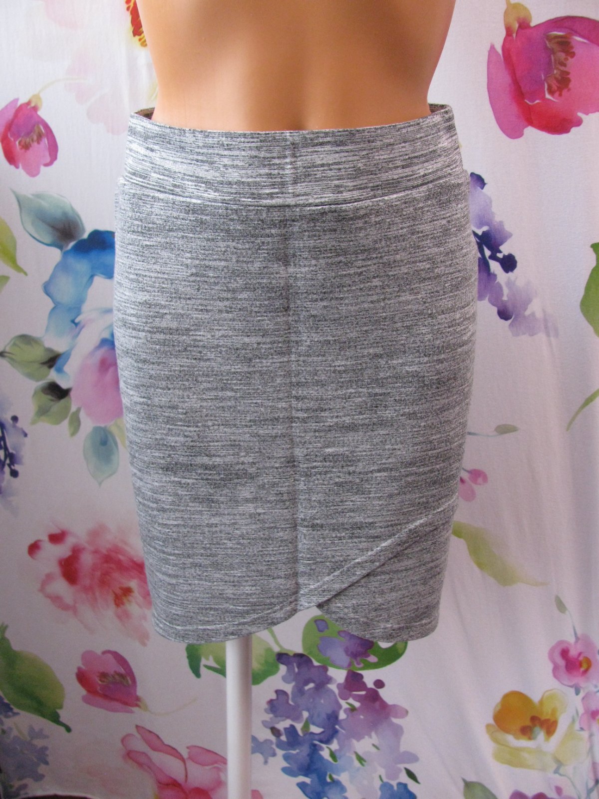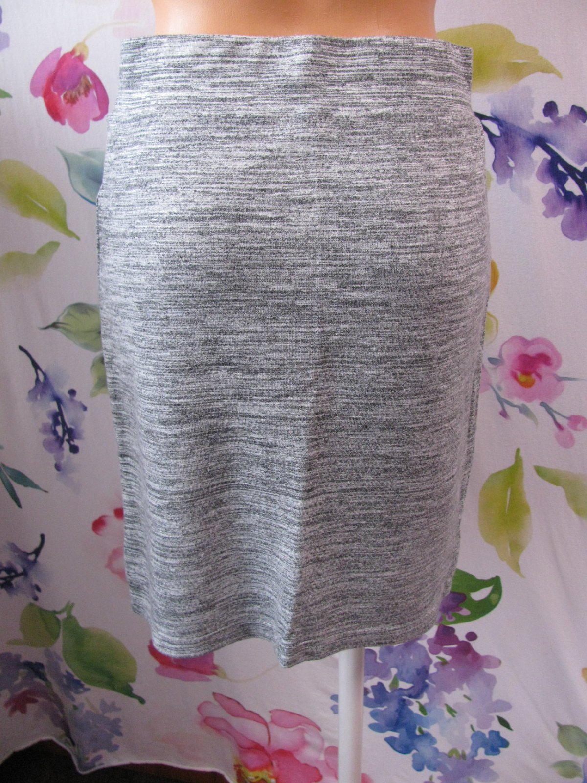 Luxusní šedá sukně se střikem, v pase široká ,pohodlná guma, 70% viskoza, 30% polyester.