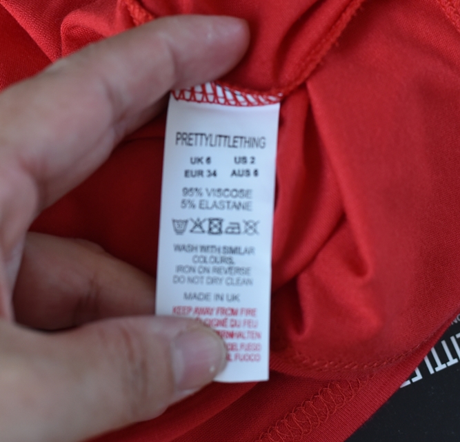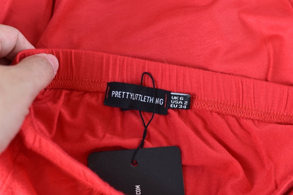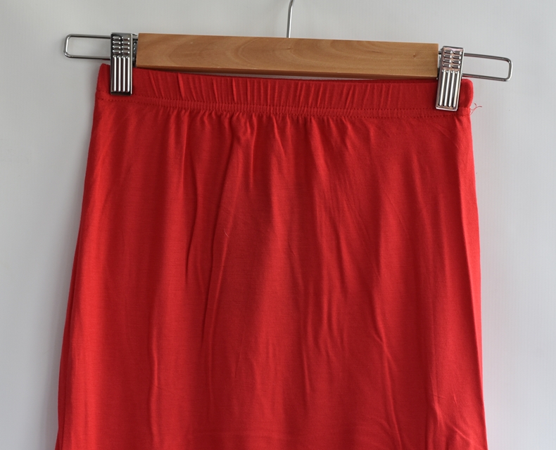 Červená úpletová sukně.