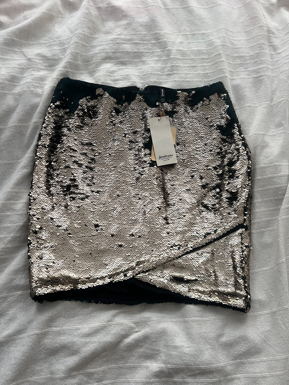 Jemná zlato stříbrná barva + zelená, která přechází do černé, v závislosti na umístění flitrů a osvětlení. Flitry jsou jemné a příjemné na dotek.