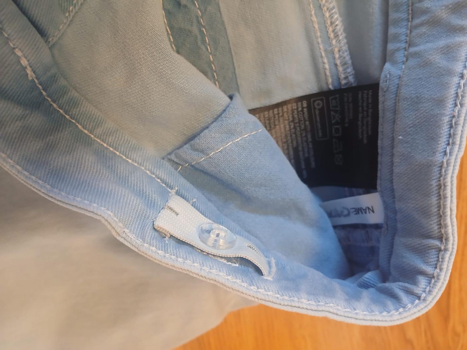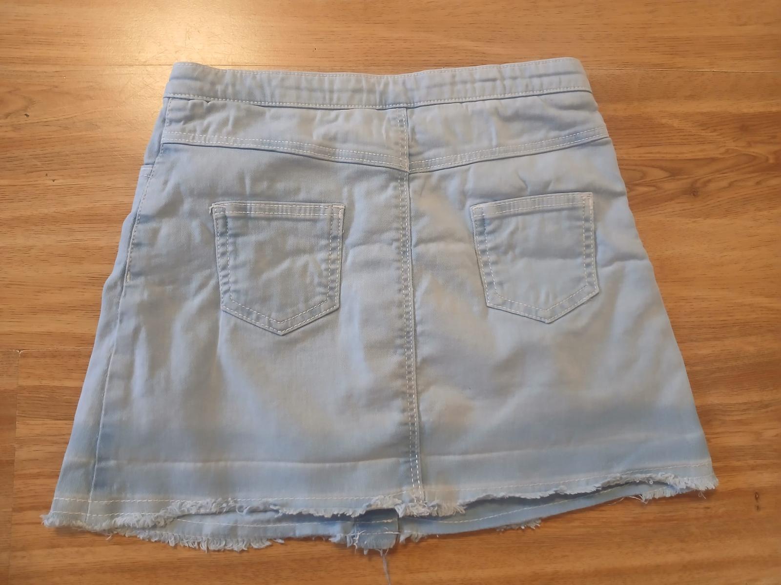 kvalitní pružná riflová sukně v.122, kapsy, nastavitelná velikost pasu, délka 27cm,stav perfektní