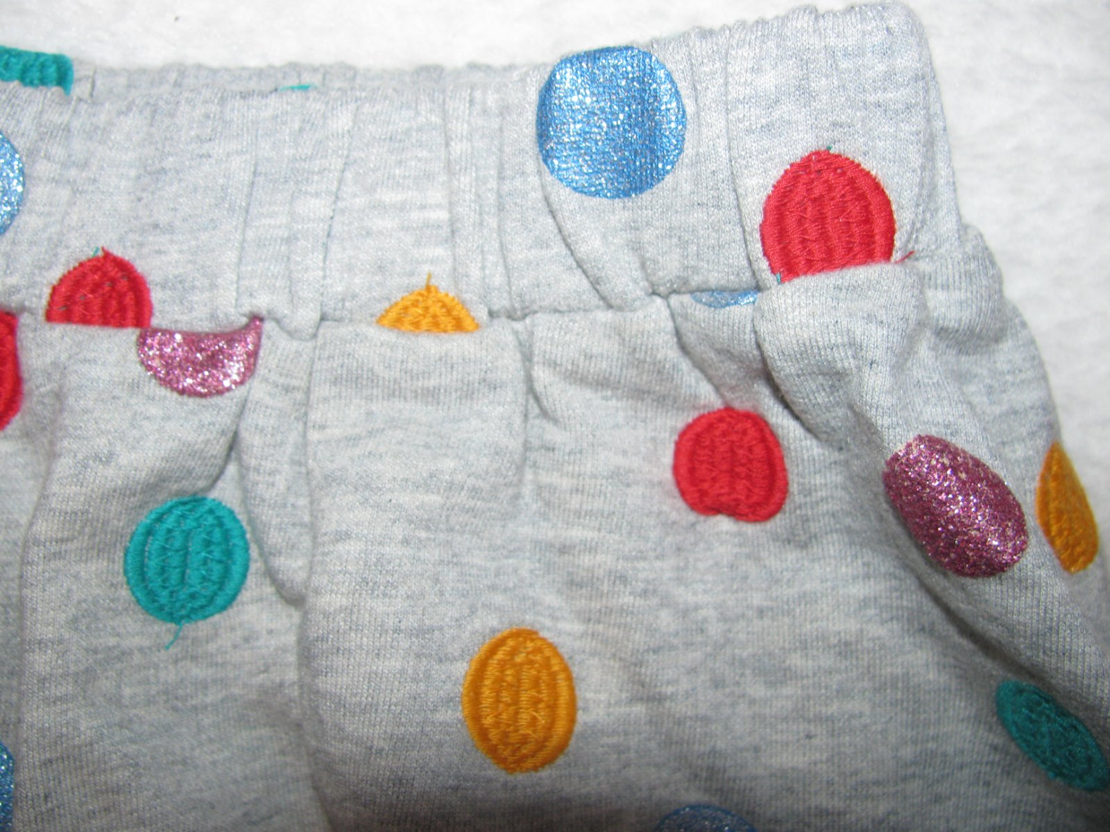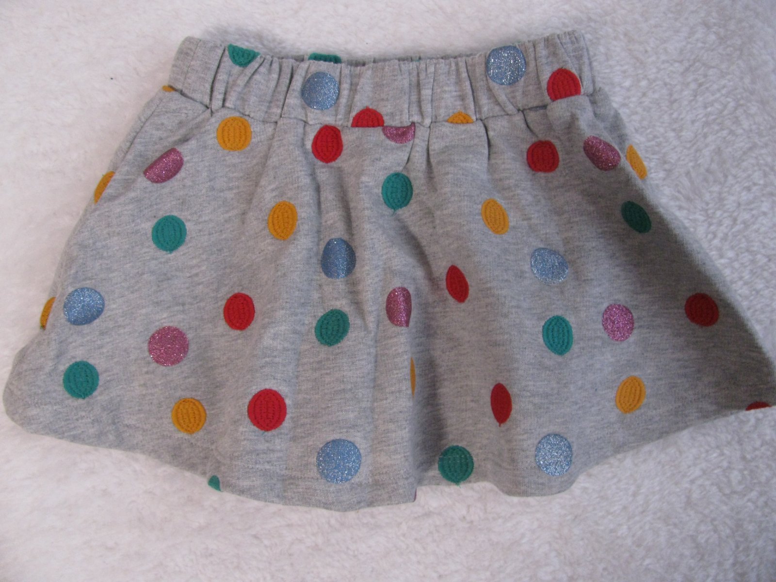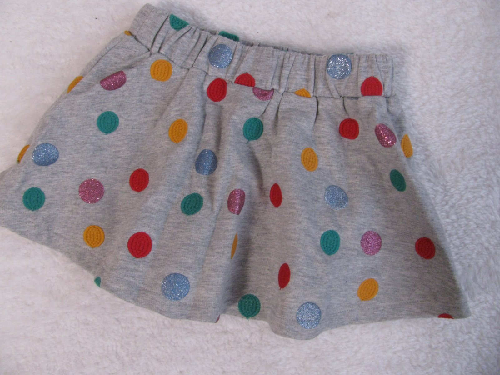 Krásná šedá, bavlněná sukýnka, v pase širší pohodlná guma, třpytivé puntíky, 77% bavlna, 23% polyester.
