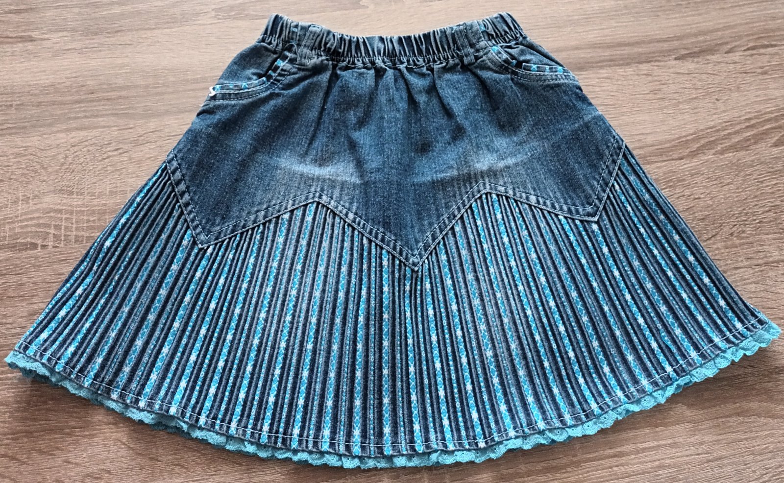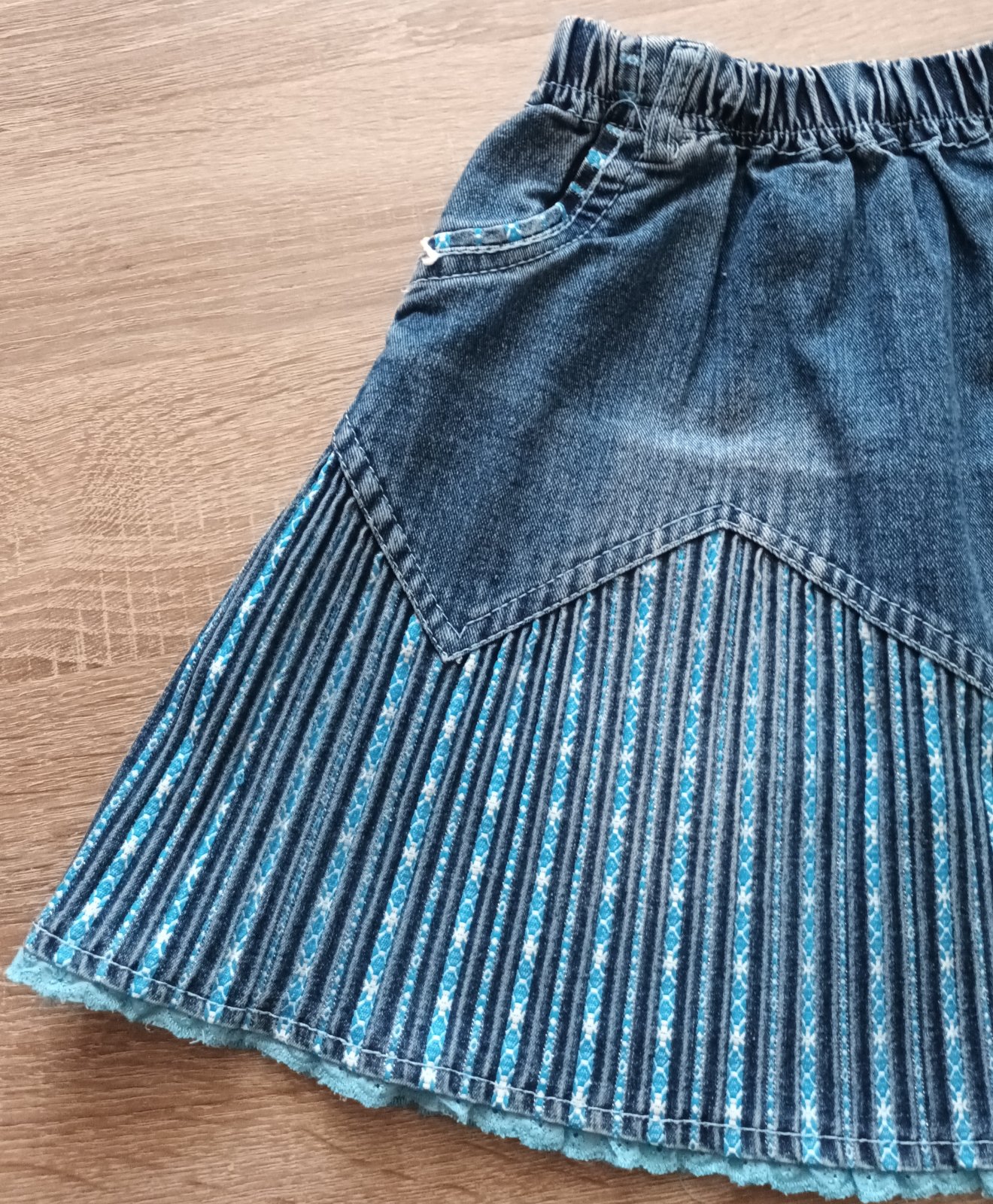 Moc krásná riflová sukně vel.176. Sukně je v pase na gumu. Sukně je málo nošená, bez vad.