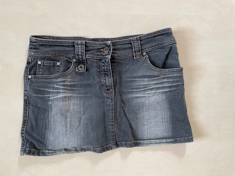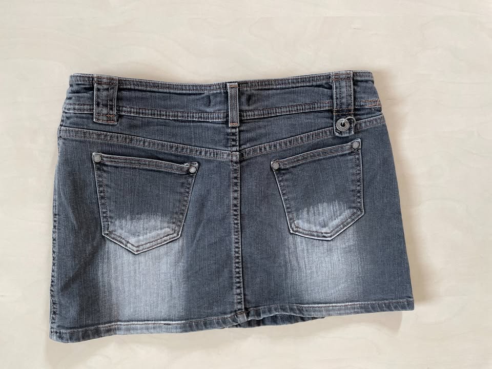 Šedá šisovaná džínová minisukně s kruhy, vel S, R