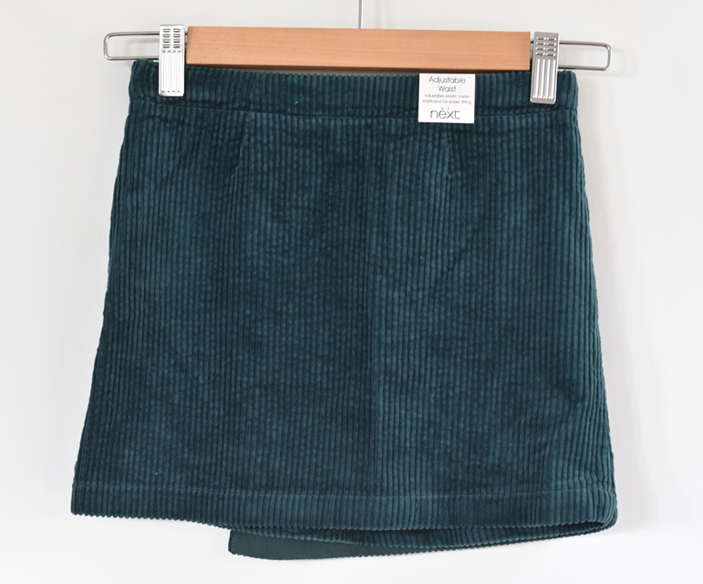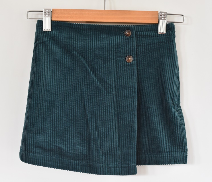 Zelená manšestráková sukně. V pase regulace, zip na boku.