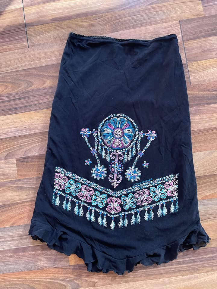 1008. nabízím k prodeji tuto černou síťovinovou sukni s obrázkem na PD, vel neuvedena je pružná, nošena při S/M a le natáhne se i více. Pas guma. Vrchní látka jako hustá síťovina. Pod ní kratší podšívka. Nošena málo, ale na zadním volánu jsem si všimla malých direk v síťovině a malého světlého flíčku - při nošení není nijak viditelné.