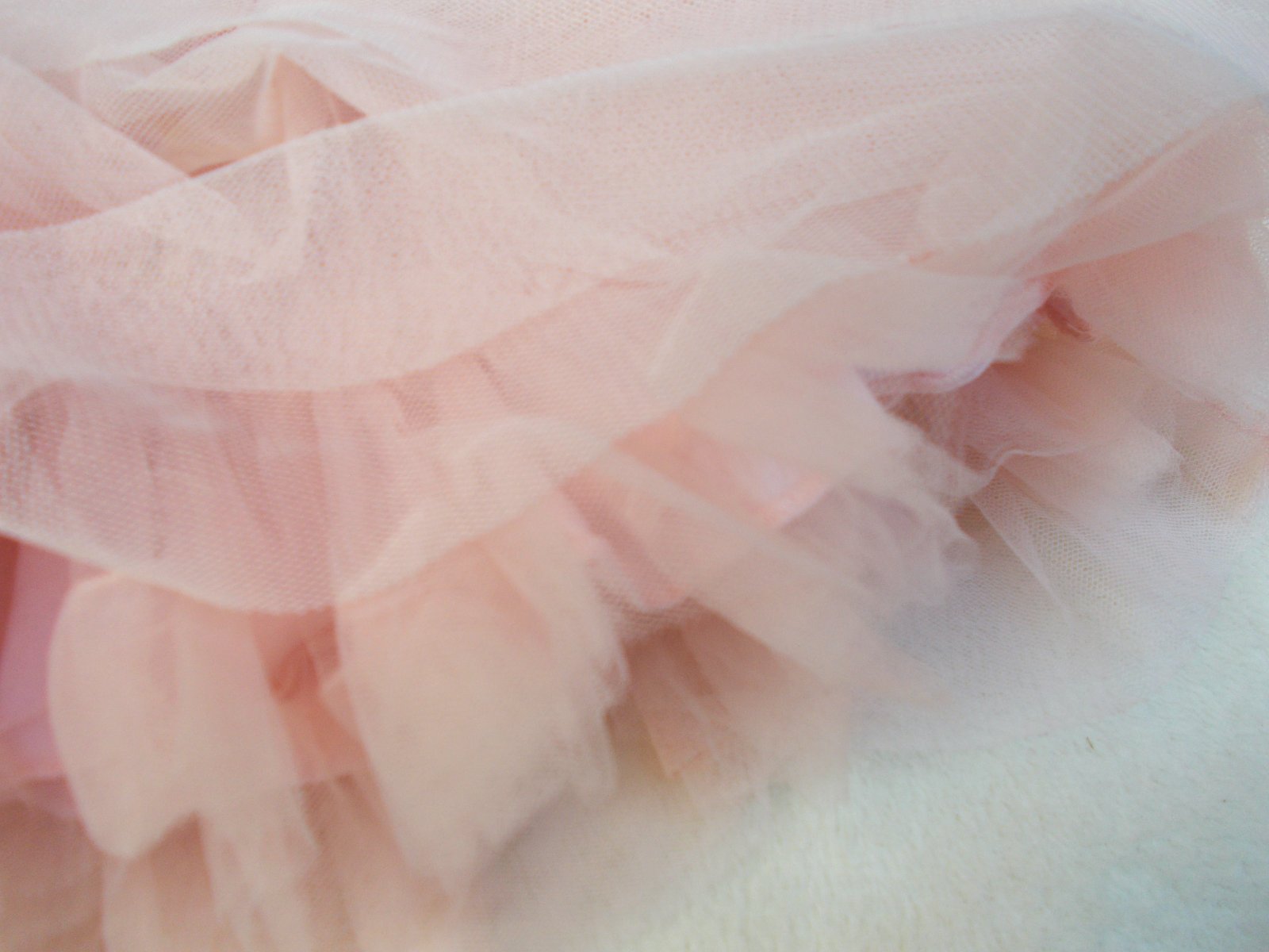 Nádherná tutu sukýnka ve světle růžové barvičce - v pase stříbrná třpytivá pružná guma. Sukně je bohatě nabíraná, ze dvou vrstev tylu + bavlněné spodničky s nabíranými tylovými kanýrky.