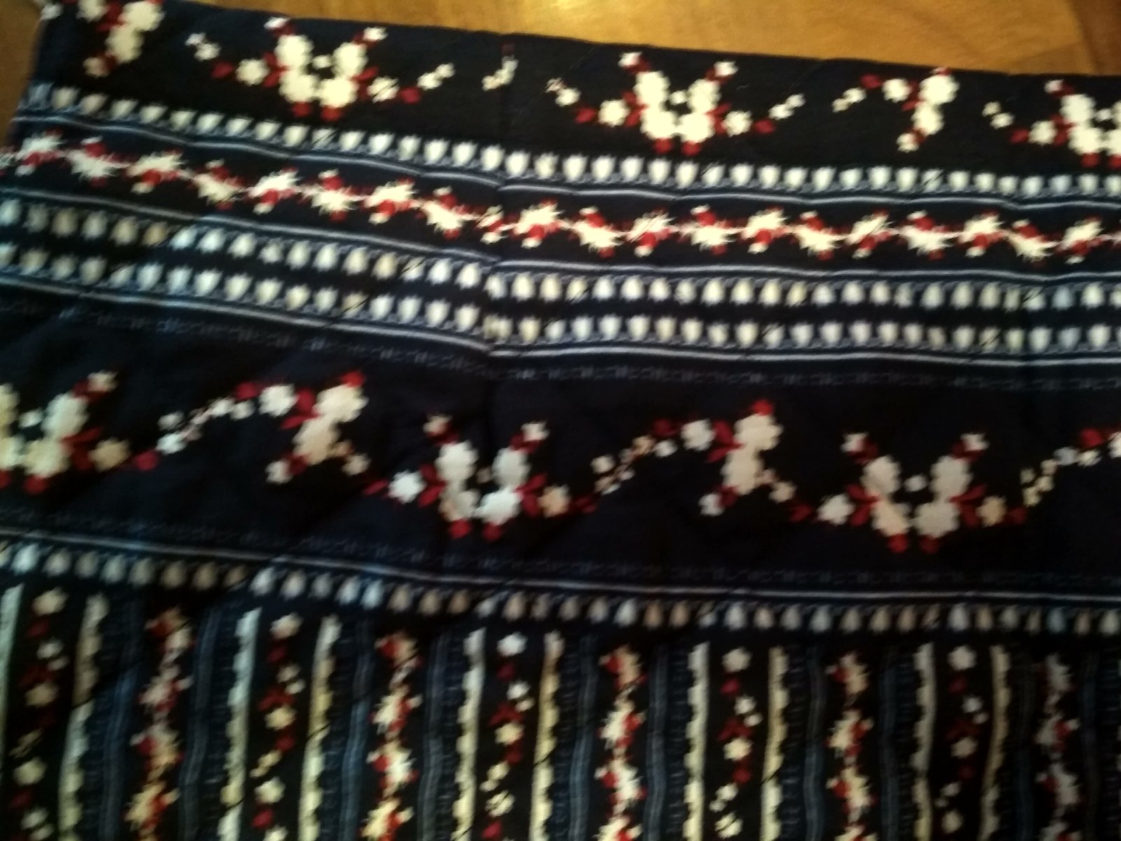 JAKO NOVÁ, BEZ ZNÁMEK NOŠENÉ. KRÁSNÁ TMAVĚMODRÁ BARVA - TMAVŠÍ NEŽ NA FOTU. V PASE ŠIROKÁ OBLÍBENÁ GUMKA - MÍRNĚ ROZŠIŘUJÍCÍ STŘIH -V PASE MAŠLE A OD MAŠLE MÍRNĚ NABRANÁ. V REÁLU KRÁSNÁ A MOC SLUŠI...