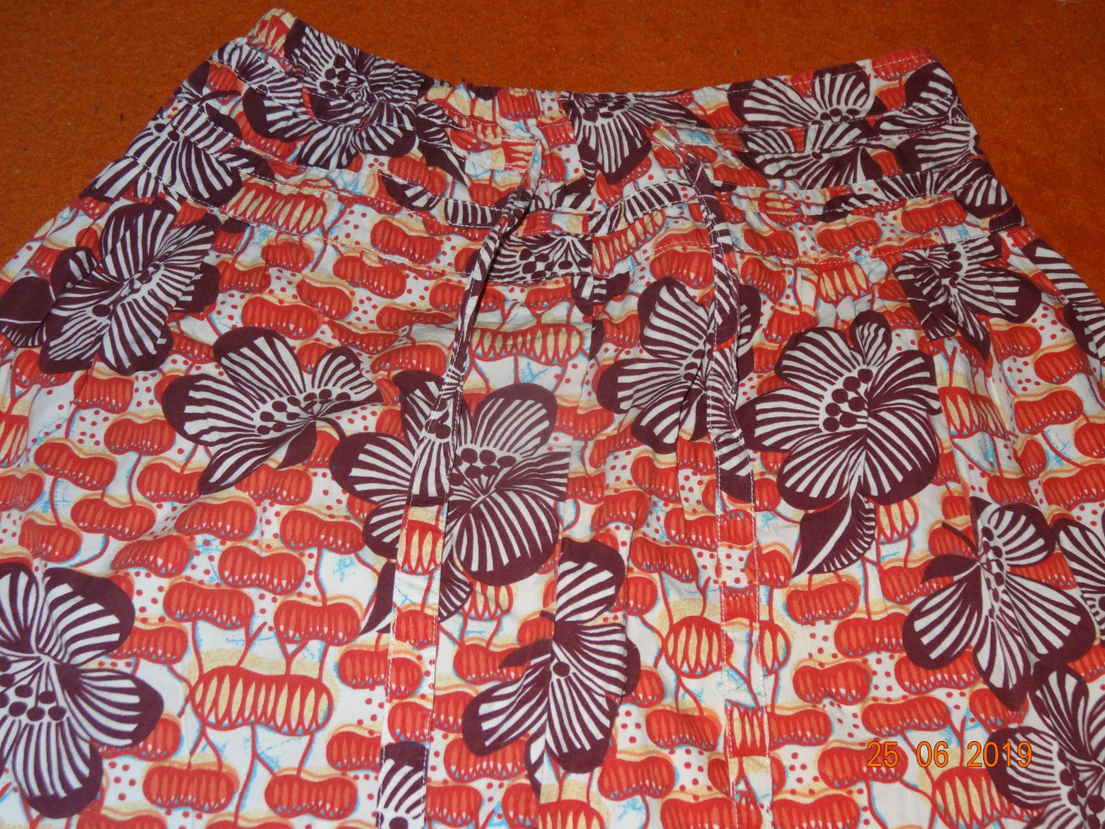 Prodám dámskou sukni značky Roxy. Velikost 36. V perfektním stavu, složení 100 % bavlna, africký motiv. Sukně je na zádech na pružící gumu. Rozměry v pase: 67 - 80 cm, délka: 40 cm. Cena sukně je 120 Kč + poštovné. Krabice č. 10.