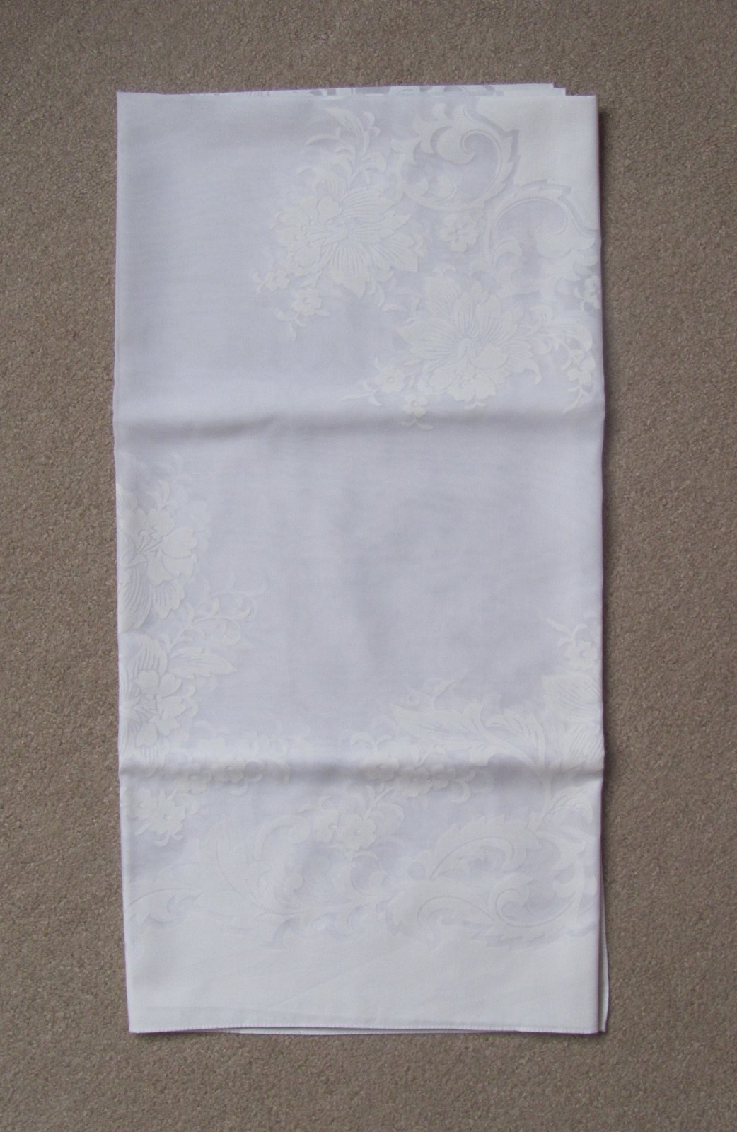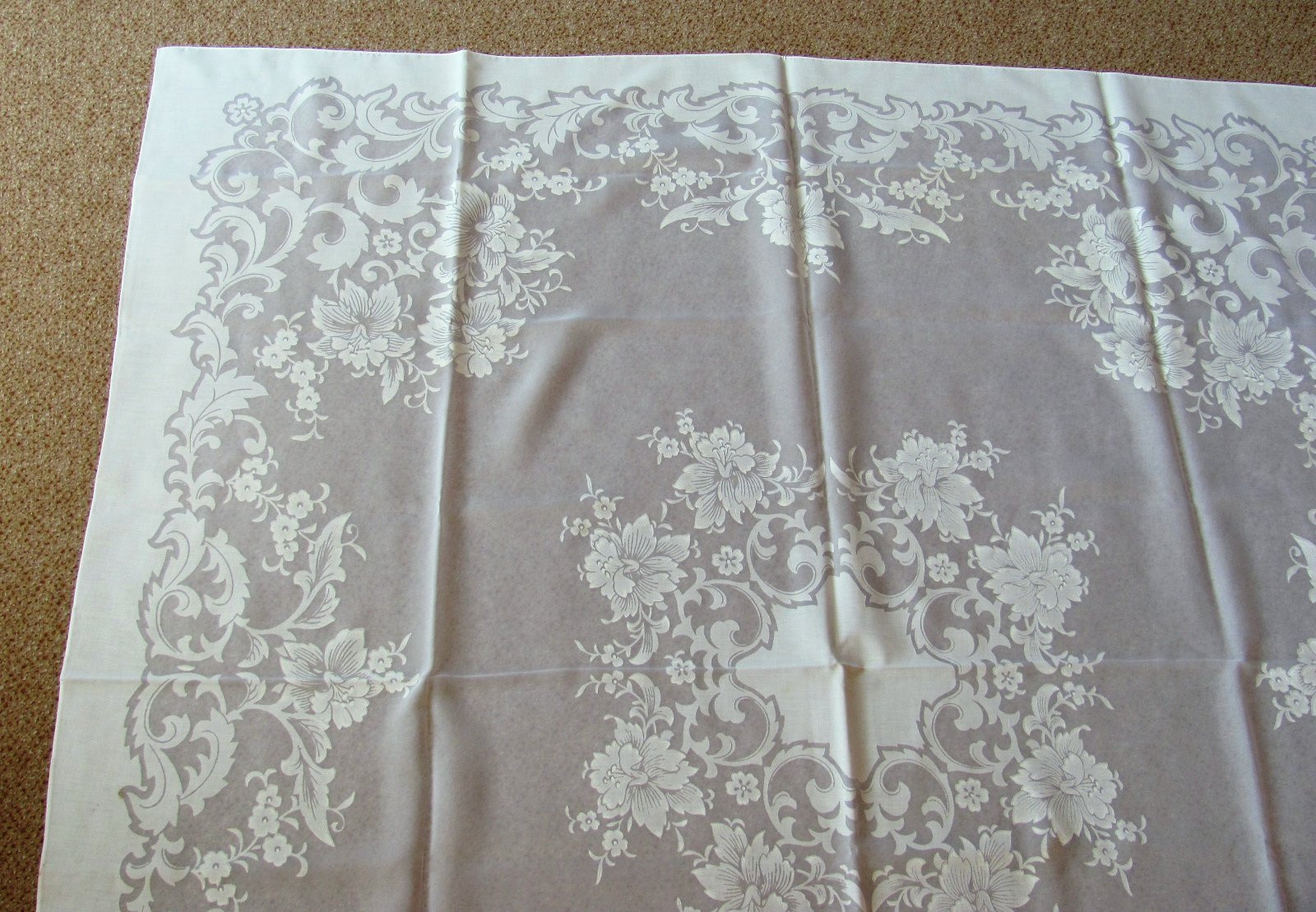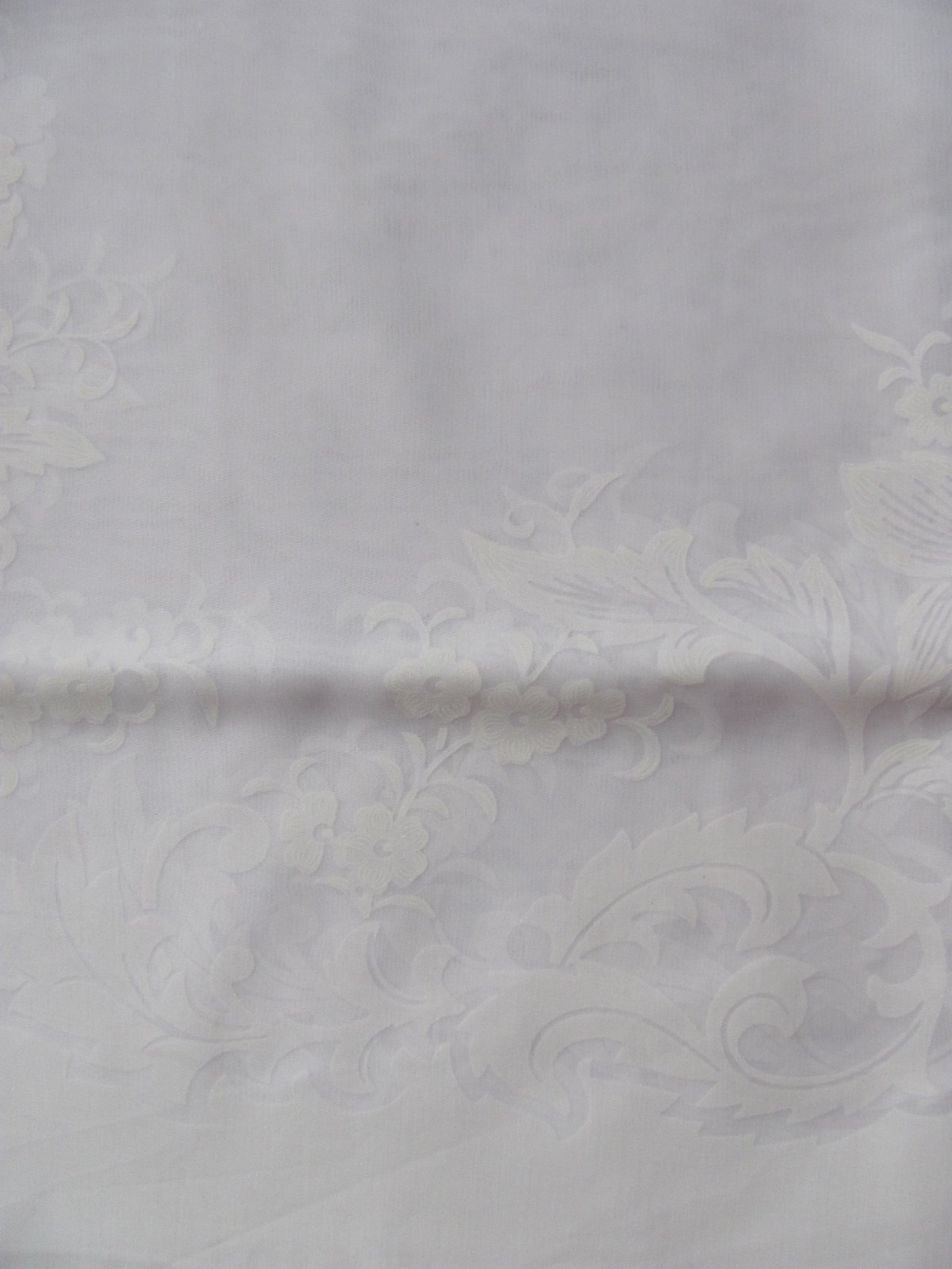 Bílý ubrus, částečně průsvitný, rozměry 130 x 130 cm. Bez fleků a děr.
