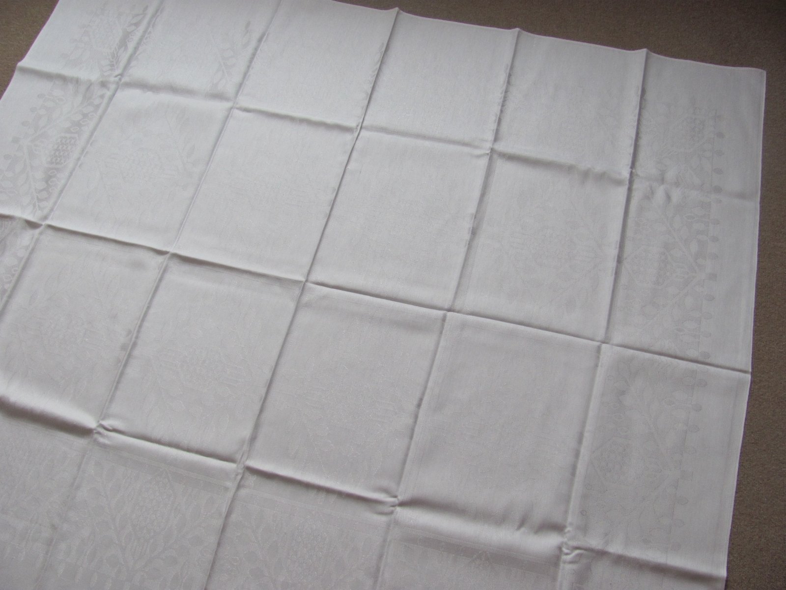 Damaškový ubrus bílý, rozměry 143 x 123 cm, bez fleků a děr.