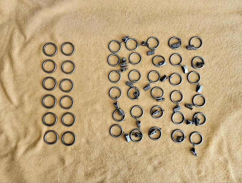 Stříbrné matné kroužky žabky na závěs nebo záclonu Za vše 300 Kč nebo 15 Kč/ks.