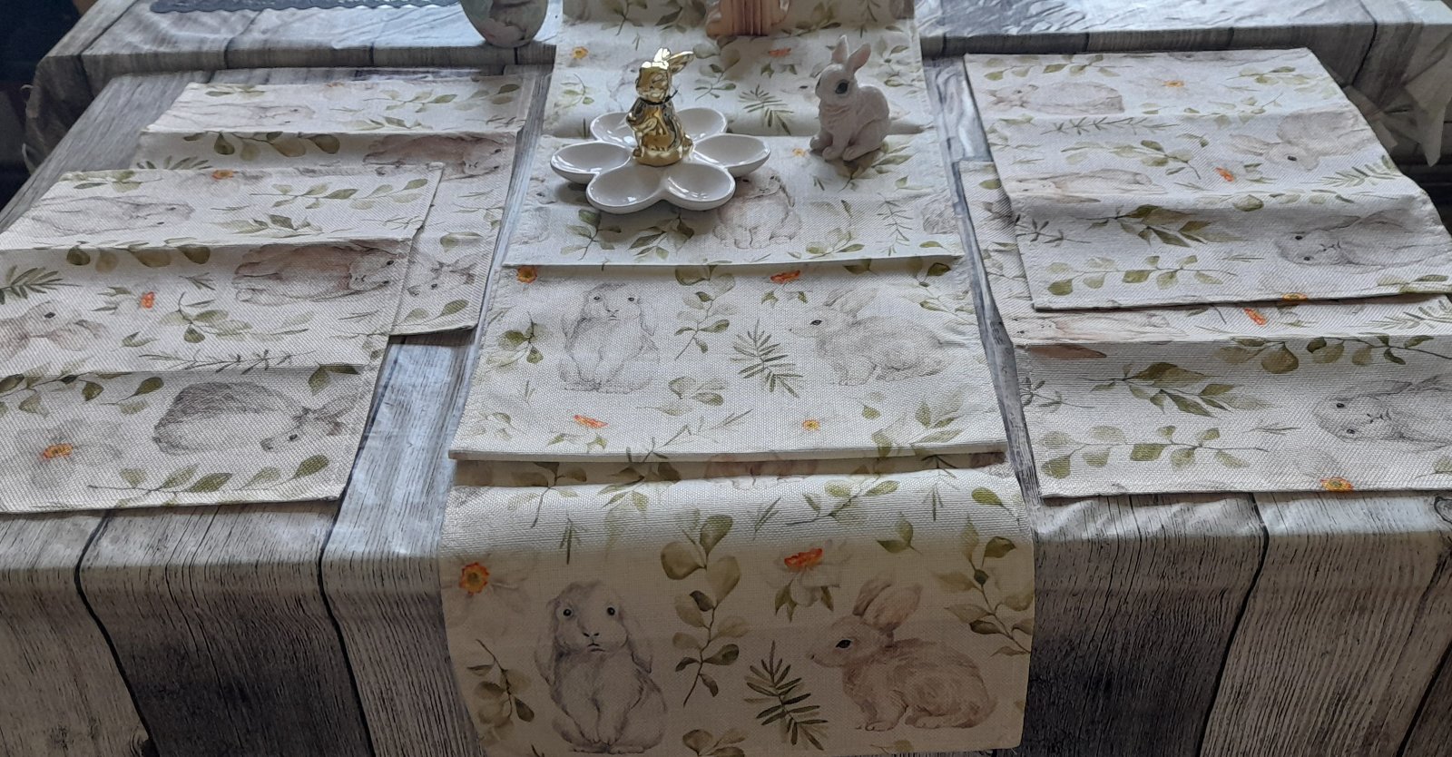 ✒ poznámka: v nabídce více Velikonočních věcí: 4ks prostírání, dekorační soška zajíček, vyšívaný ubrus husy, okenní dekorace