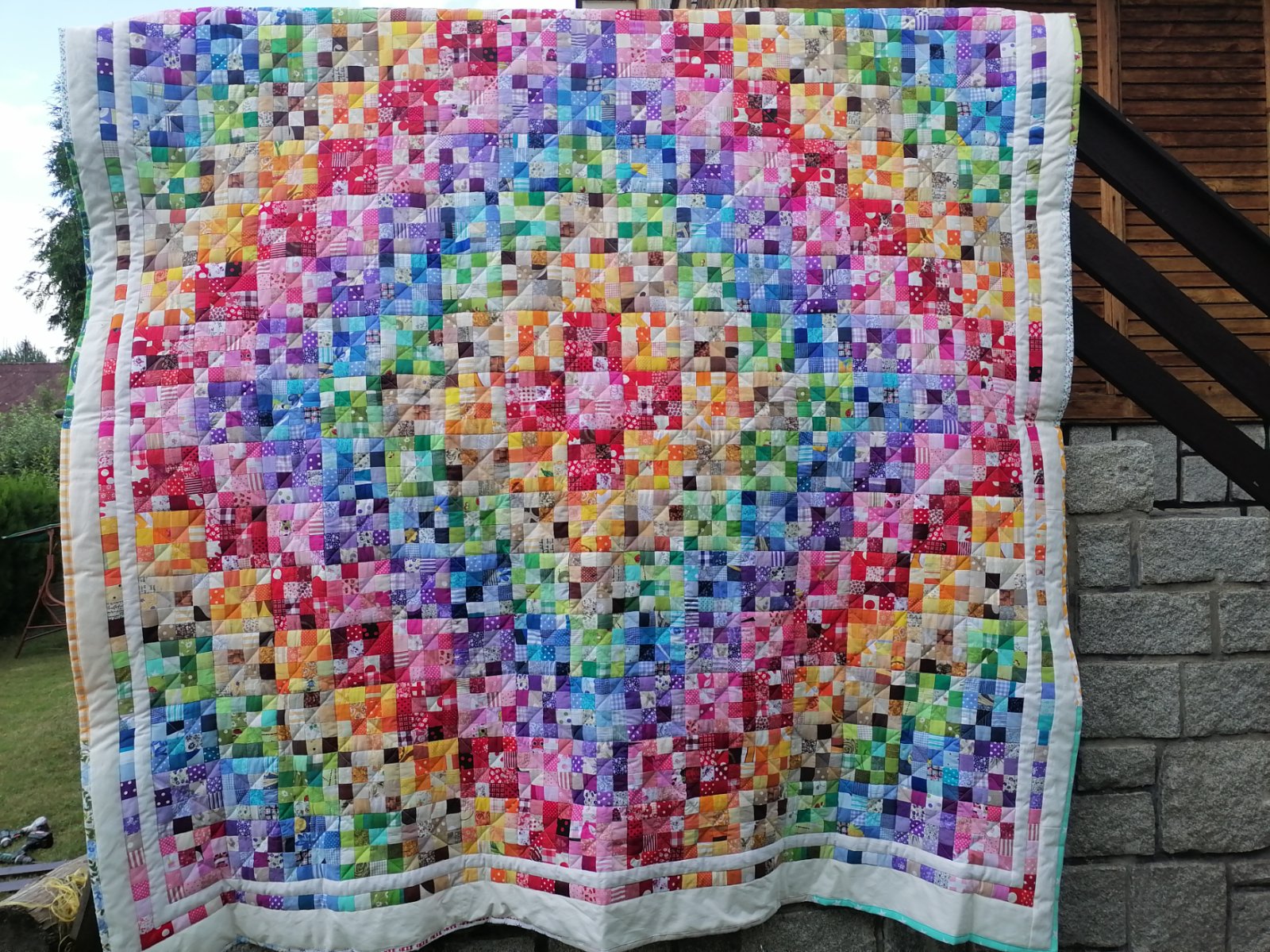 Patchworková deka velikost 235 x 230 cm,spodní látka sešitá z barevných čtverců.