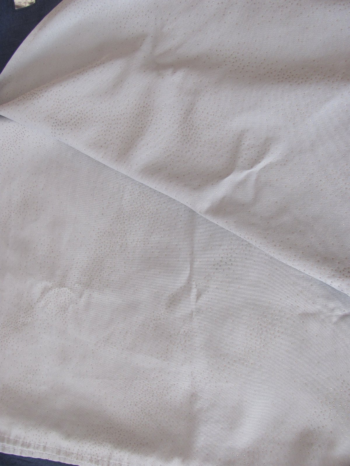 Šedý ubrus se stříbrnými plastickými tečkami, rozměry 180 x 140 cm, bez vad.