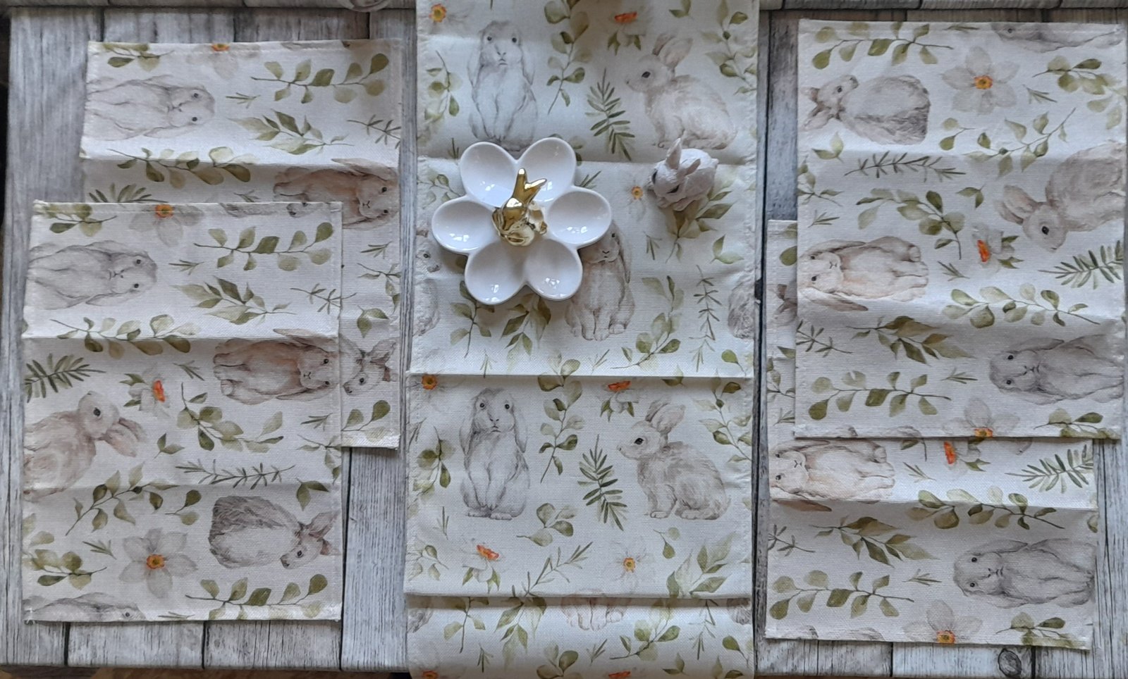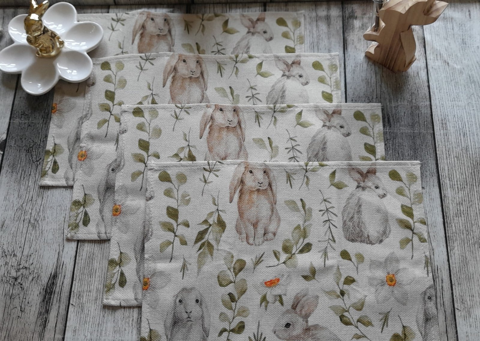 Velikonoční prostírání 4ks se zajíčky a květinami