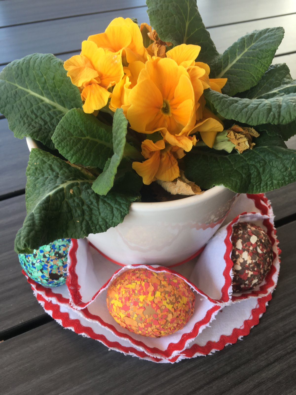 Velikonoční - průměr kruhu 20 cm, na 6 ks kraslic; cena 100 Kč.