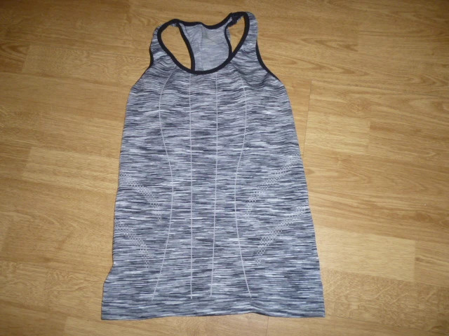 je krásné, nošené, super na sport, vzadu má průstřihy, délka je 55 cm, šířka průramky od 2x33-50 cm-hodně pružné. nejde mi přečíst vel.