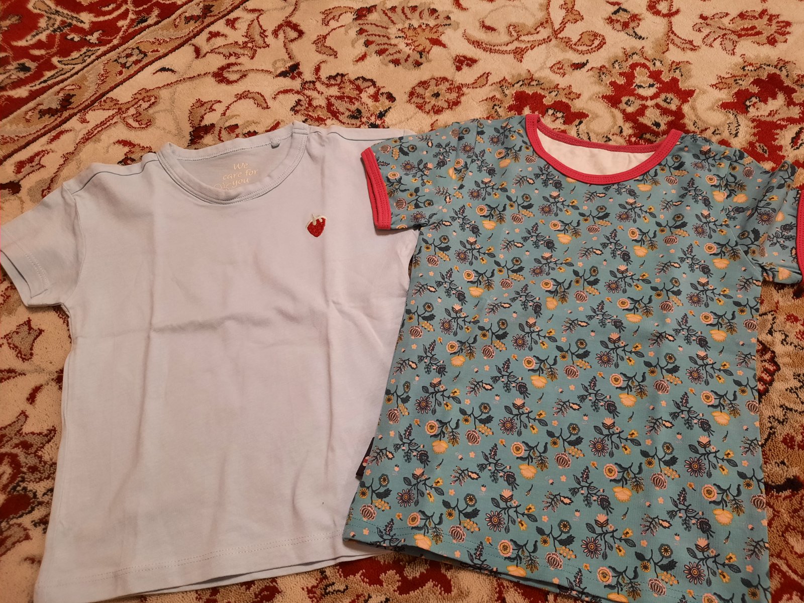 Prodám 2x tričko pro holčičku, jednou praná, nenošená. S jahodou TCM 98/104, květinové české značky, 104. Cena celkem.