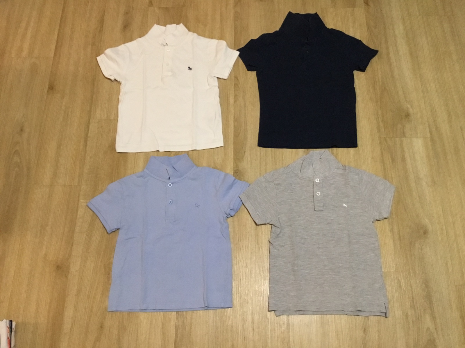 Trika v dobrém stavu. Délka tmavě modré 43 cm, šedé 42 cm, světle modré a bílé 41 cm. Cena celkem.