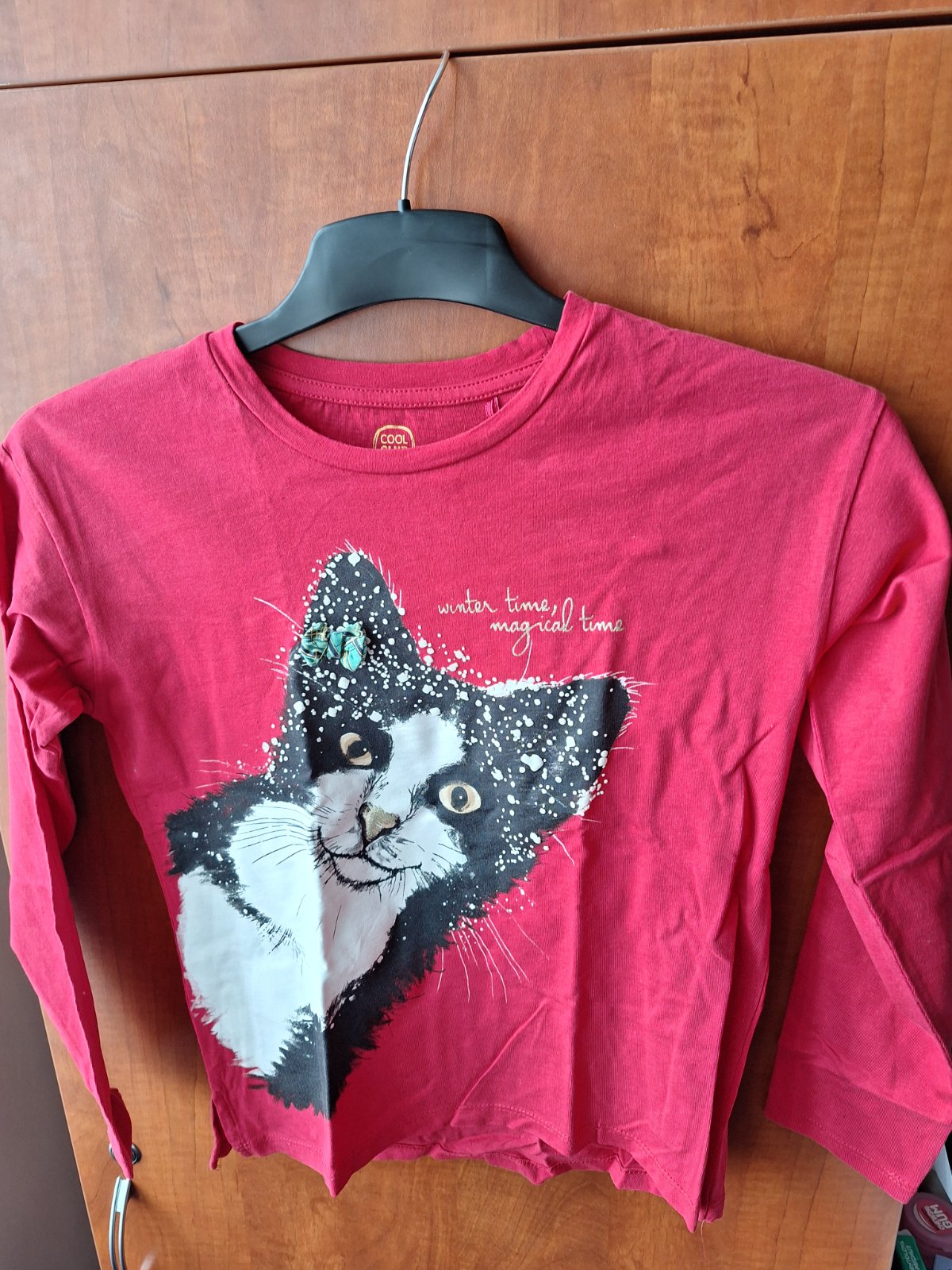 Dívčí tričko s dlouhým rukávem s vánočním motivem s kočičkou.