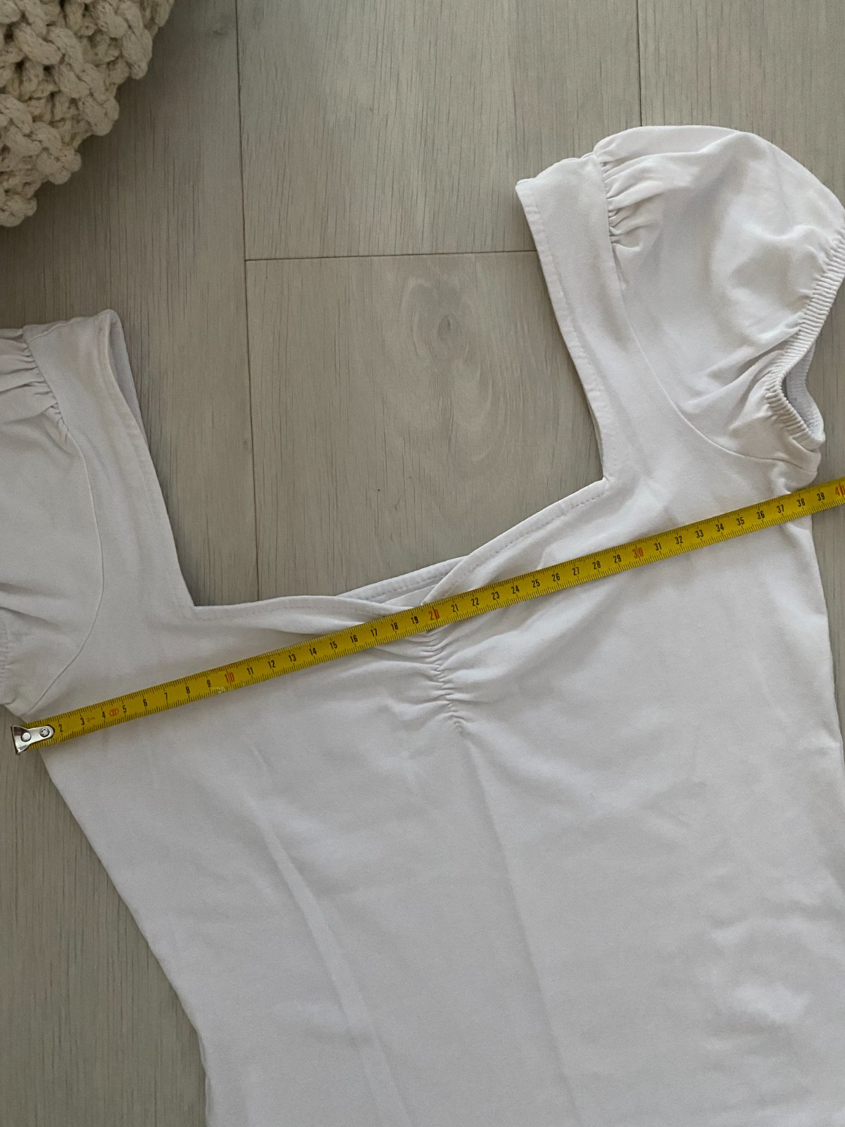 Bílé - délka 52 cm, šířka přes prsa 39 cm.