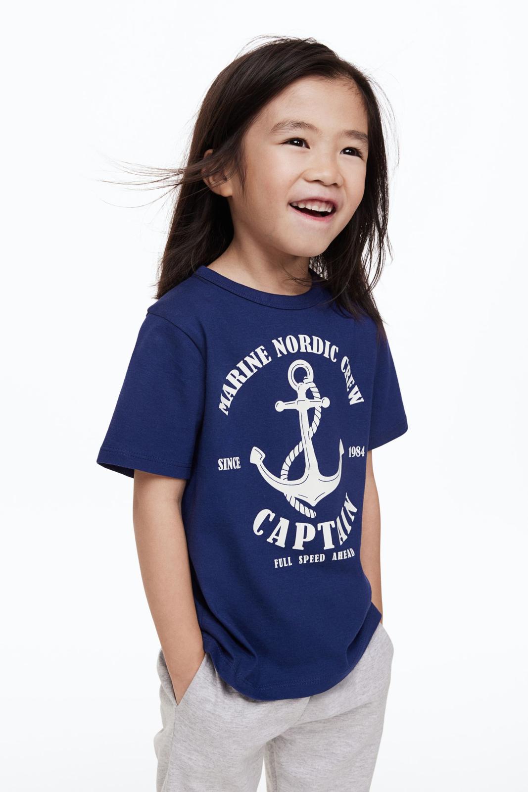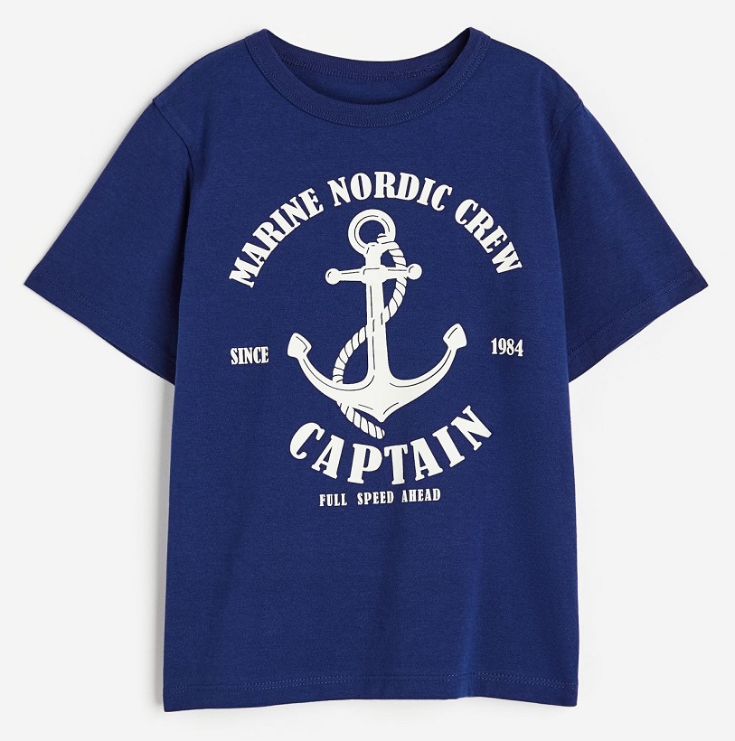Tmavé námořnické triko H&M s kontrastním bílým potiskem s kotvou.