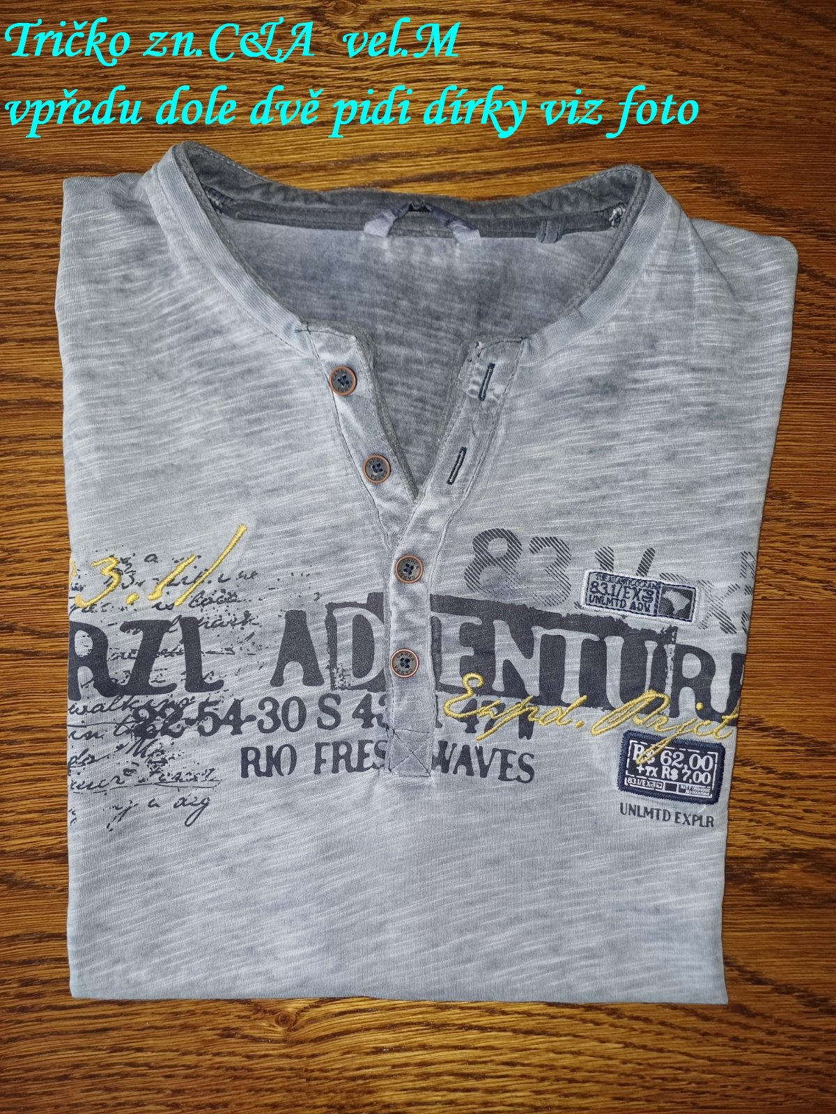 Krásné, 100% bavlněné tričko s jemným vzorkem, vyšitý nápis na hrudi, Top stav bez vady. Značka C&A Velikost M Rozměry dél.-70cm,,,hruď-2x49cm,,,boky-2x49cm,,,