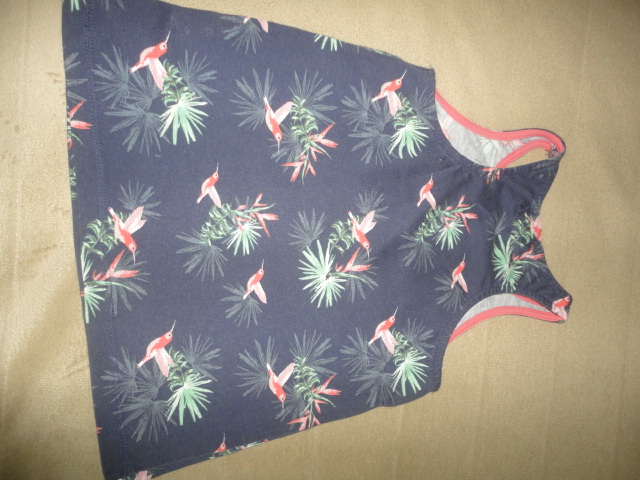 *Malinové tílko Hm, vel. 7-8 let. Krátce nošené, top stav, širší rmínka, materiál 96% bavlna, 4% elastan, d. 42, š. 29,5cm v klidu, hezky pruží, cena 33Kč. **Tílko s ptáčky Hm, vel. 7-8 let. Velmi příjemné, krátce nošené, bavlněné tílko bez vad, vzadu prokrojený střih, d. 43, š. 32,5cm v průramku, dole š. 35,5cm, střih lehce do A, cena 35Kč. ***Jako nové výrazné tílko Hm, vel. 7-8 let. V tom stavu pružné tílko na úzká ramínka, materiál 95% bavna, 5% elastan, d. 48, š. v průramku 30,5cm, dole š. 32cm, cena 39Kč. Celkem za vše 85Kč.