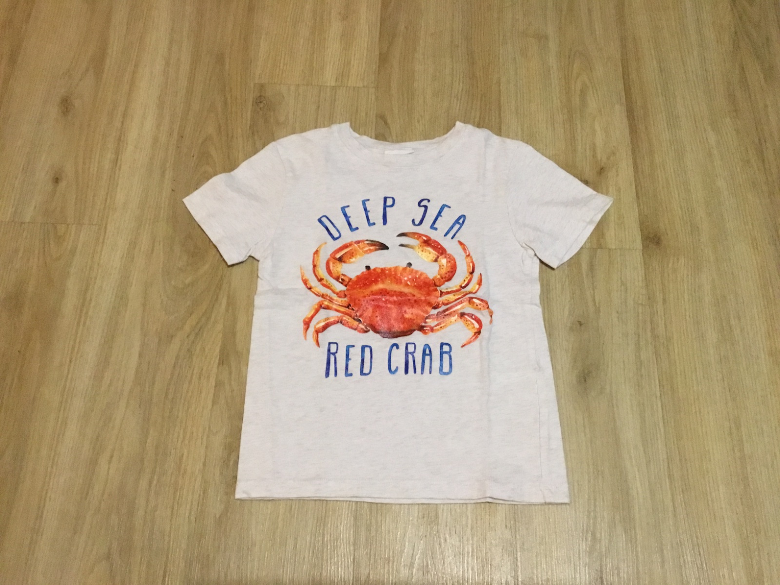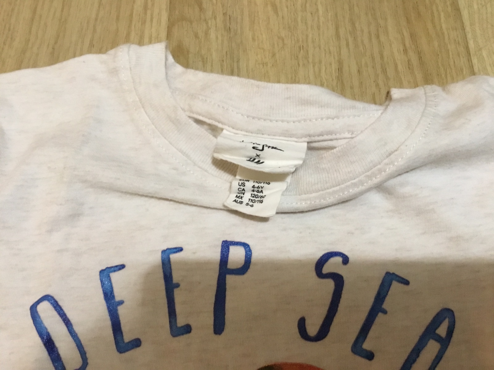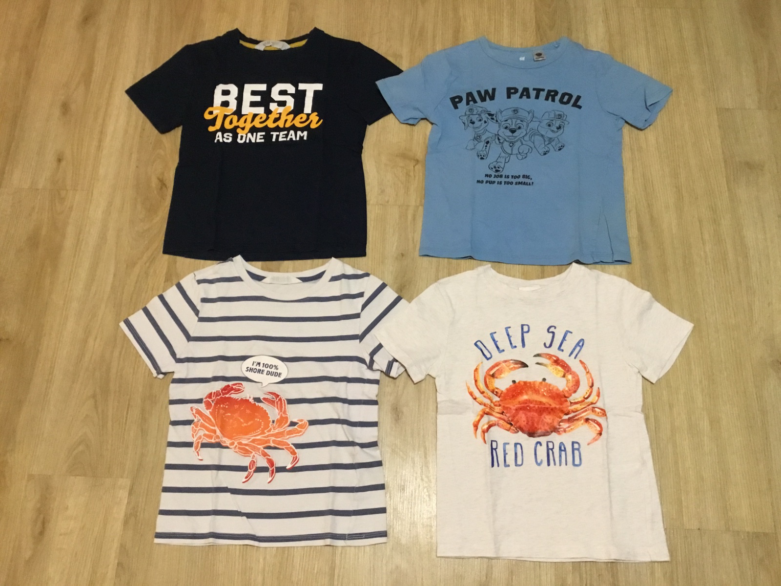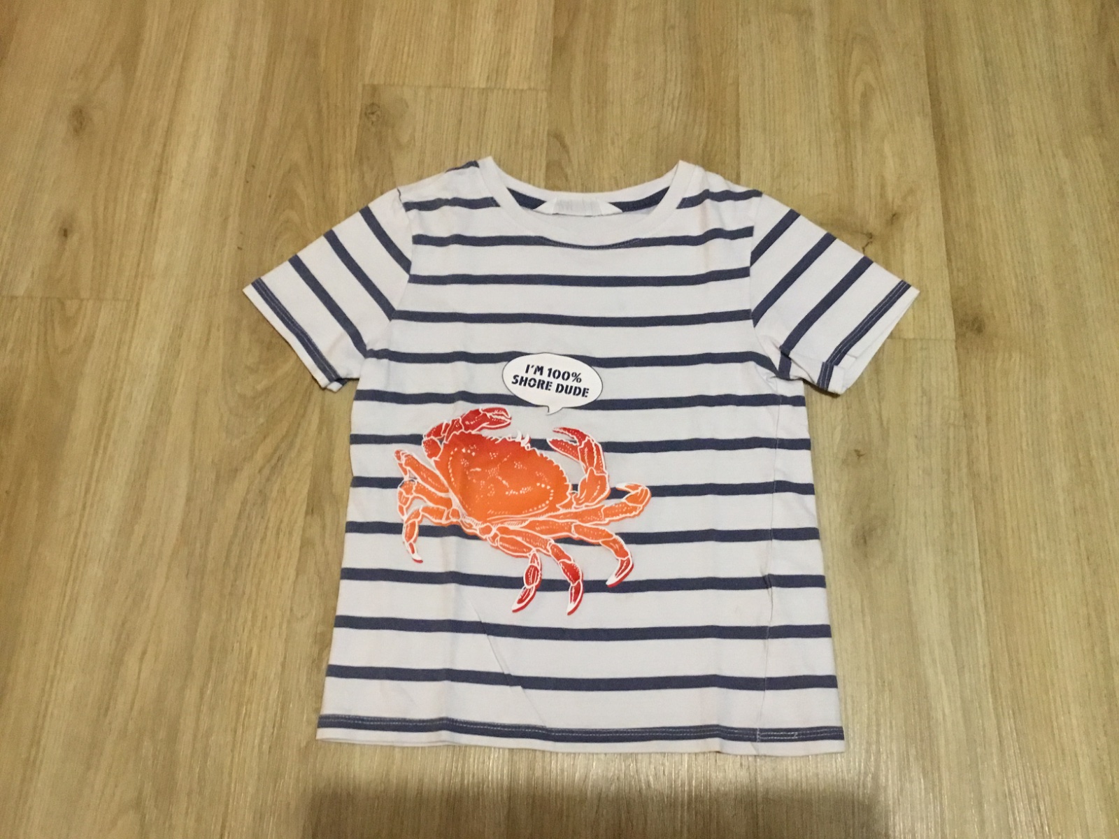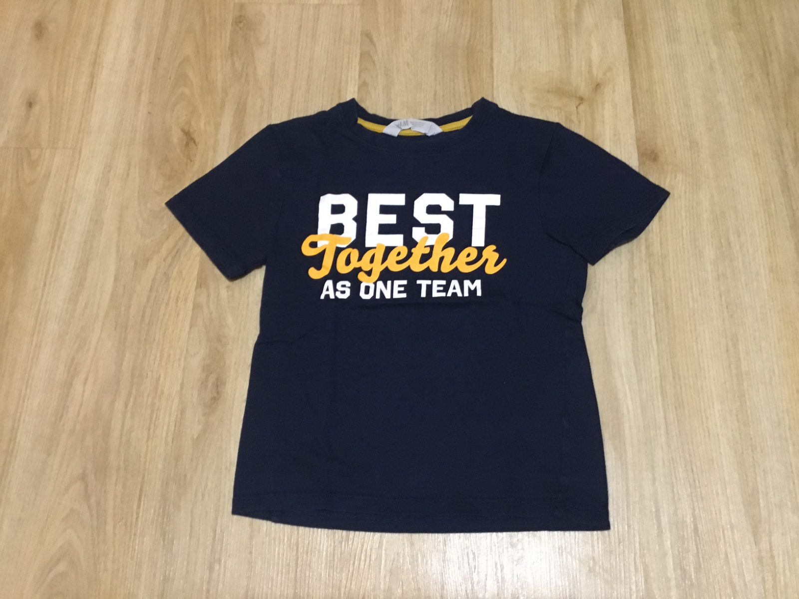 Hezké triko bohužel vepředu má flek tak uvádim jen na lítačku.Velikost 110/116.Celková délka od náramenice je 43 cm.