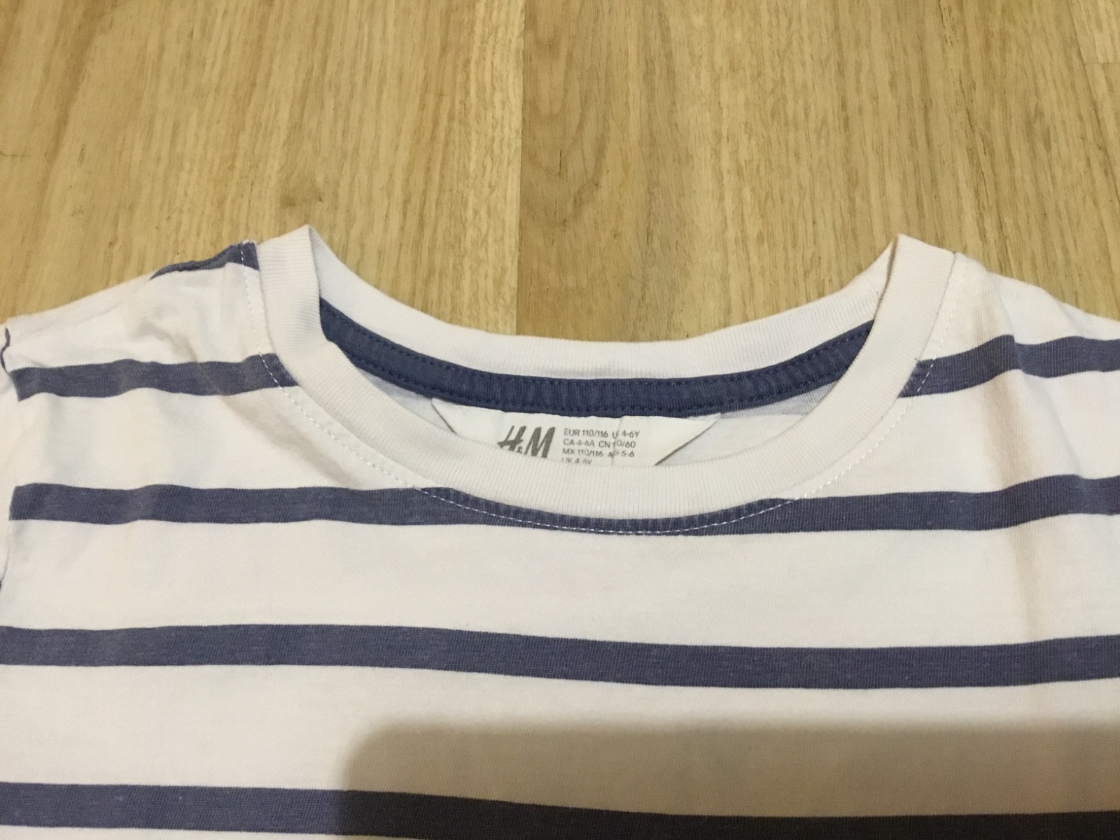 Nové pruhované triko, velikost 110/116. Délka 42 cm, šířka pod průramky 2 x 32,5 cm, délka rukávu od krku 45 cm.