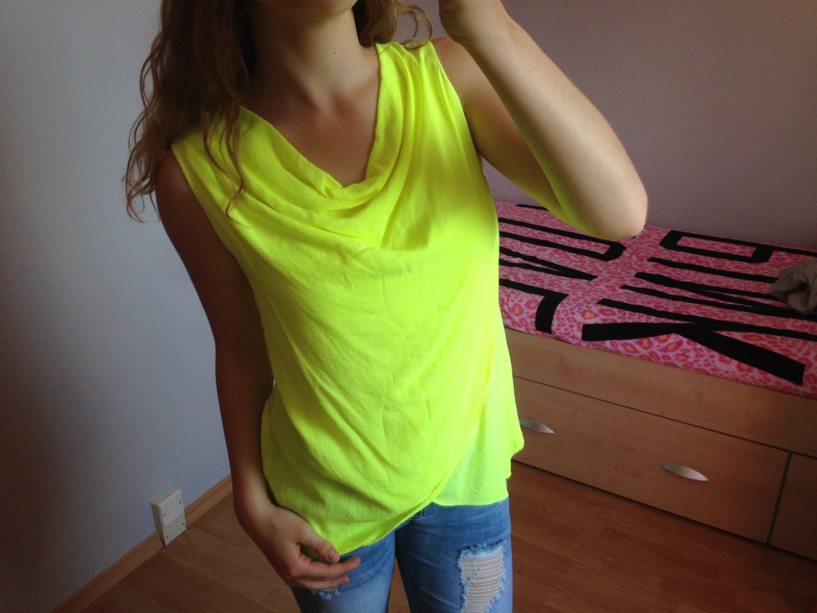 Překřížená neon žlutá halenka - má vadu výrobce - na zádech u visačky je dírka (viz foto).