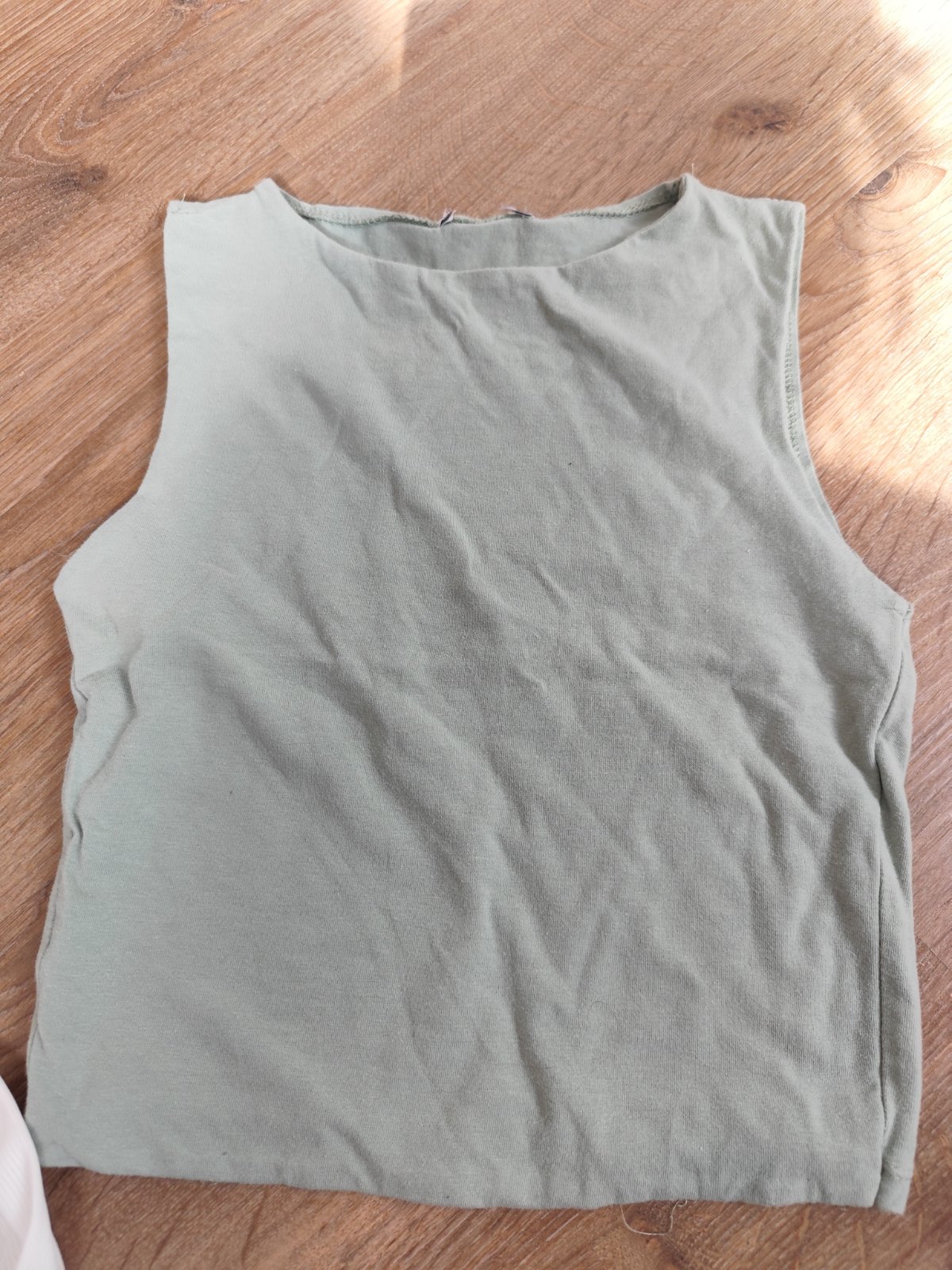 Párkrát nošené, je bez flíčků, dírek a žmolečků, jen je nepatrně světlejší v podpaží. Velikost je uvedena S, materiál je 100% bavlna. ROZMĚRY: délka od ramen 50 cm, šířka 37 cm