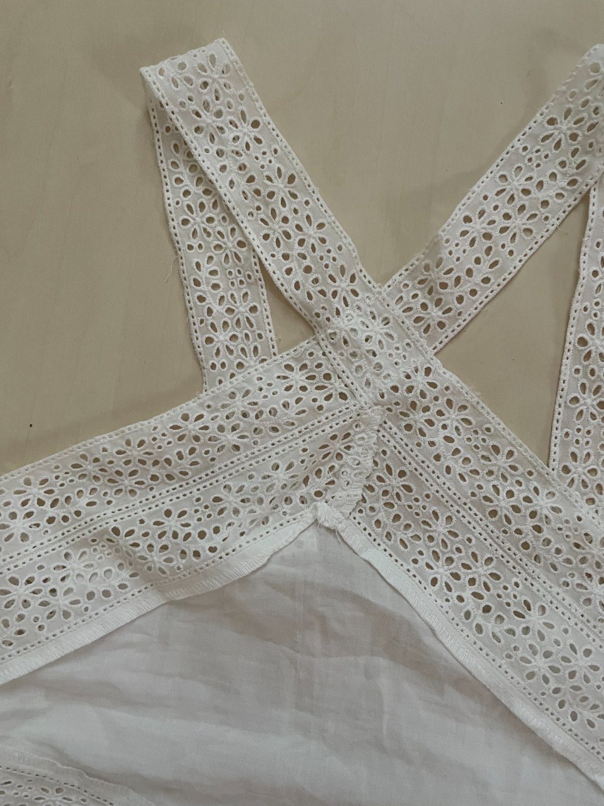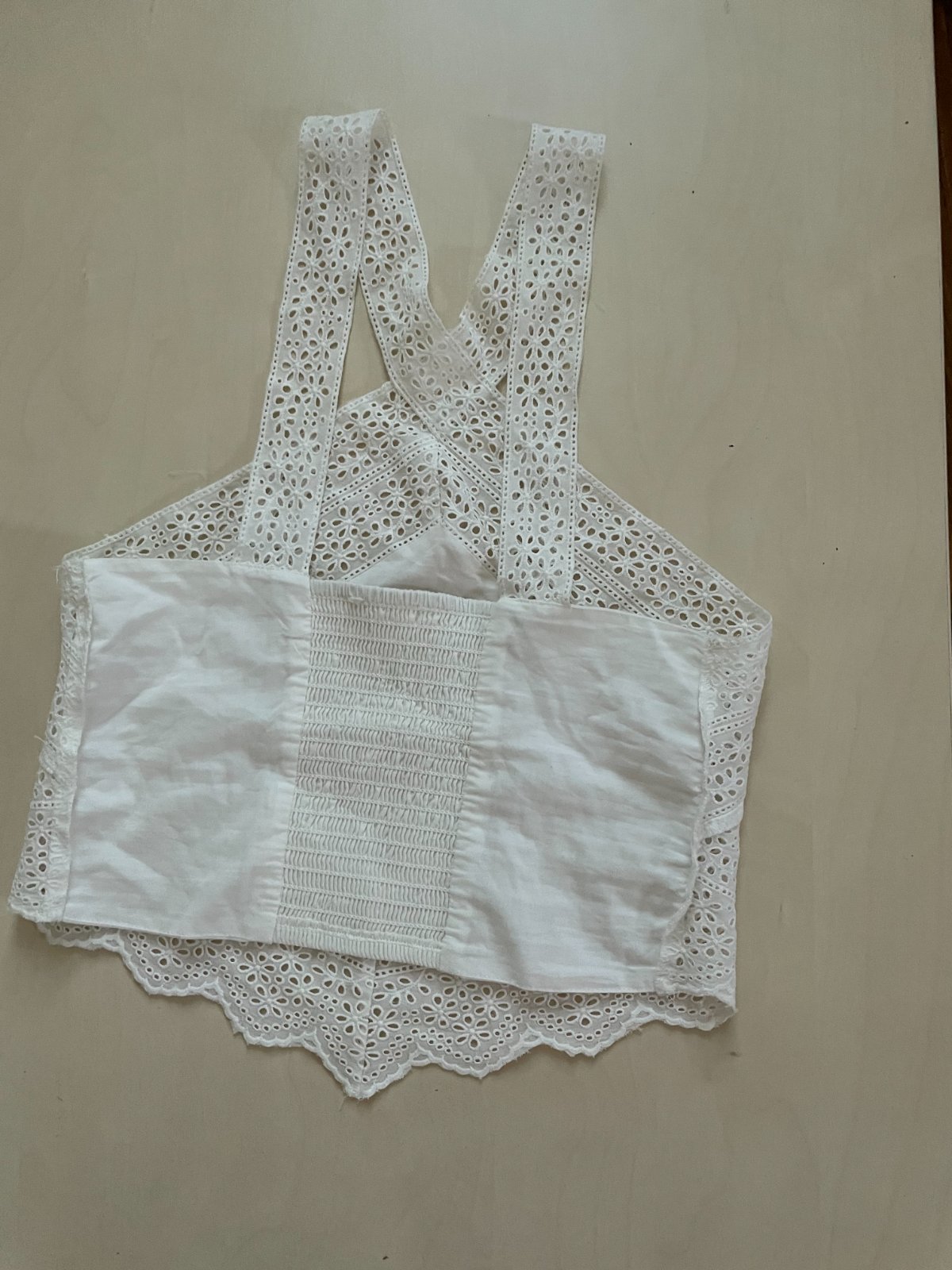 let. nabízím k prodeji tento bílý top s děrováním a madeira v lemech, vel není uvedena kupován při XS, prosím měřte. Nenošen, bez vad, krásný