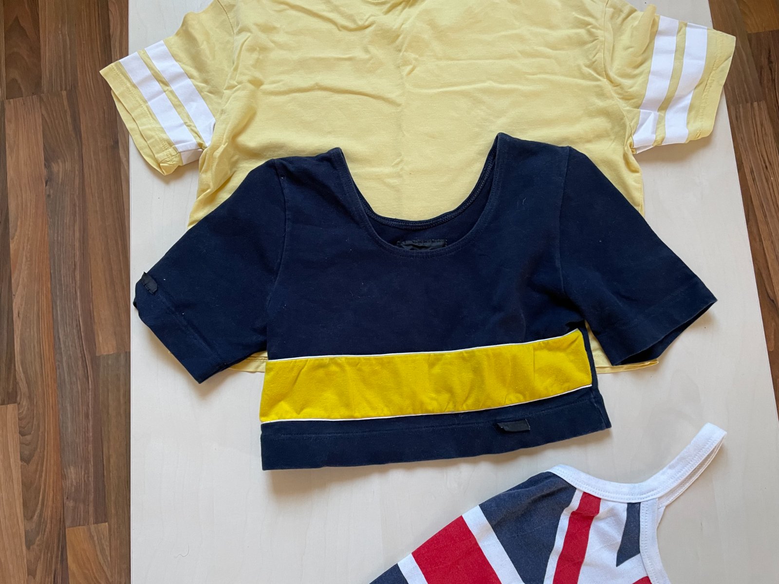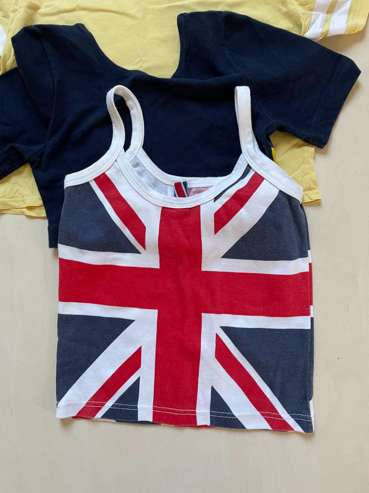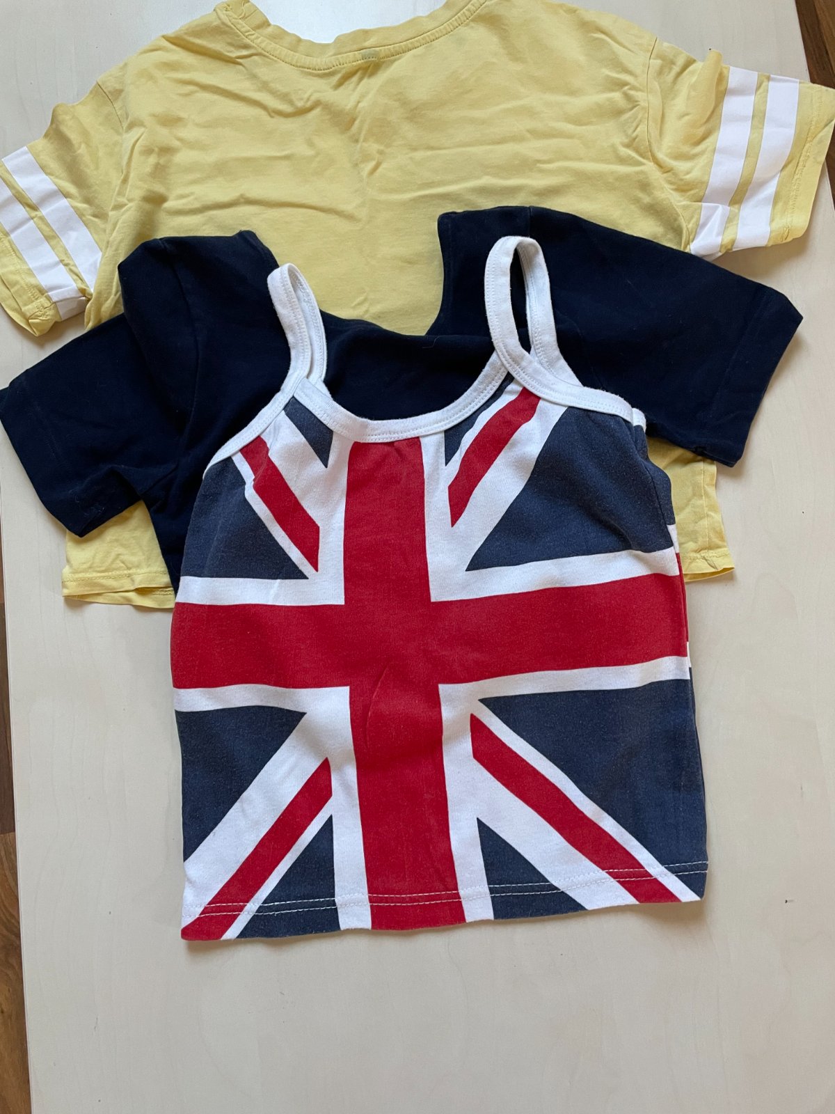 hol. nabízím k prodeji tyto crop topy, vel není uvedena, dcera měla kolem XS a cca 15 let, prosím měřte. Složení neuvedeno, ale asi bavlna. Nošené, bez vad jen vliv praní, triko vlajka má více chloupek a je šíslé - částěčně myslím i bylo - nevím, ale myslím všechny stále jsště službu dělají. Viz fota