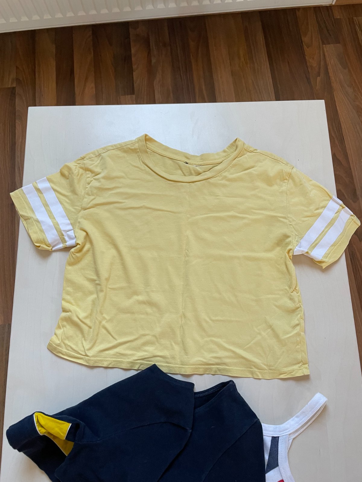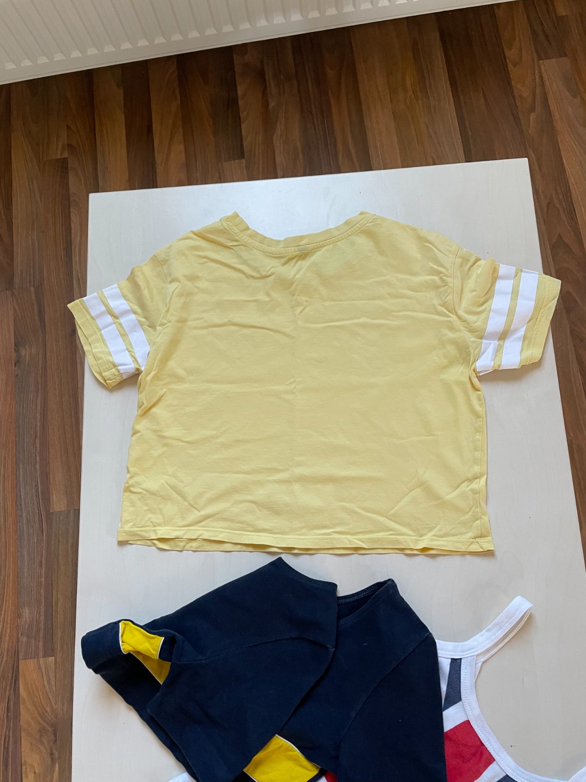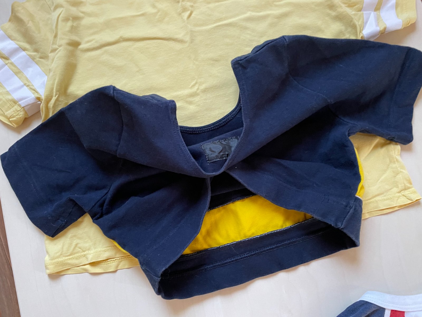 hol. nabízím k prodeji tyto crop topy, vel není uvedena, dcera měla kolem XS a cca 15 let, prosím měřte. Složení neuvedeno, ale asi bavlna. Nošené, bez vad jen vliv praní, triko vlajka má více chloupek a je šíslé - částěčně myslím i bylo - nevím, ale myslím všechny stále jsště službu dělají. Viz fota