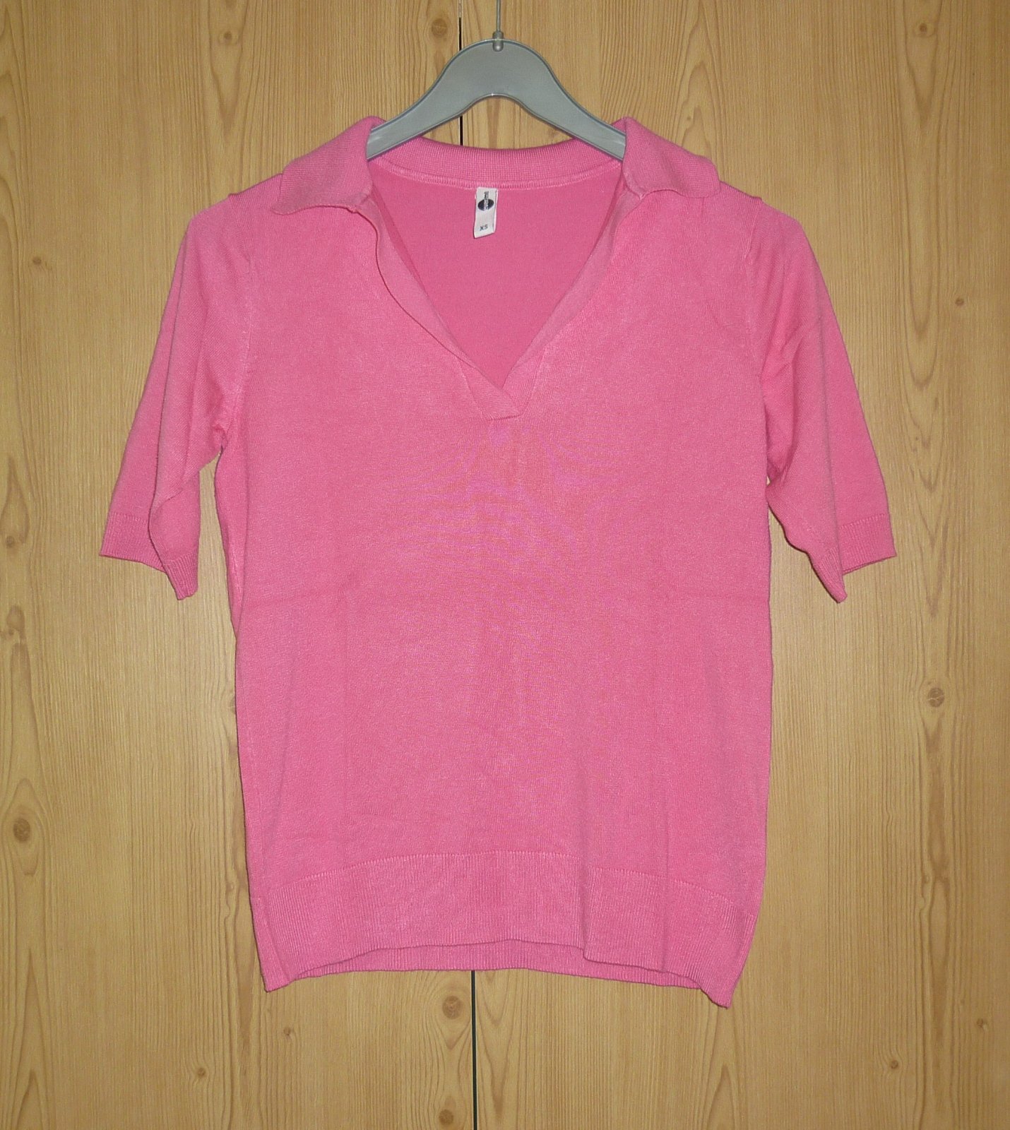 Prodám růžový tenký svetřík - halenku s krátkým rukávem Takko Fashion, pouze 1x na sobě, top stav. Nádherná barvička, nepodařilo se mi lépe zachytit. Límeček, výstřih do véčka, krátký rukáv. Materiál: 70% viskóza a 30% polyamid. Velikost: XS. Rozměry: šířka v místě podpaží v klidu 43cm x 2, šířka v místě podpaží v natáhnutém stavu 54cm x 2, délka rukávu od ramene 28cm, celková délka 58cm. Cena: 70,-Kč + poštovné. Koukněte na moje další inzeráty, třeba si něco vyberete a ušetříte na poštovném. Tel.: 728 455 567